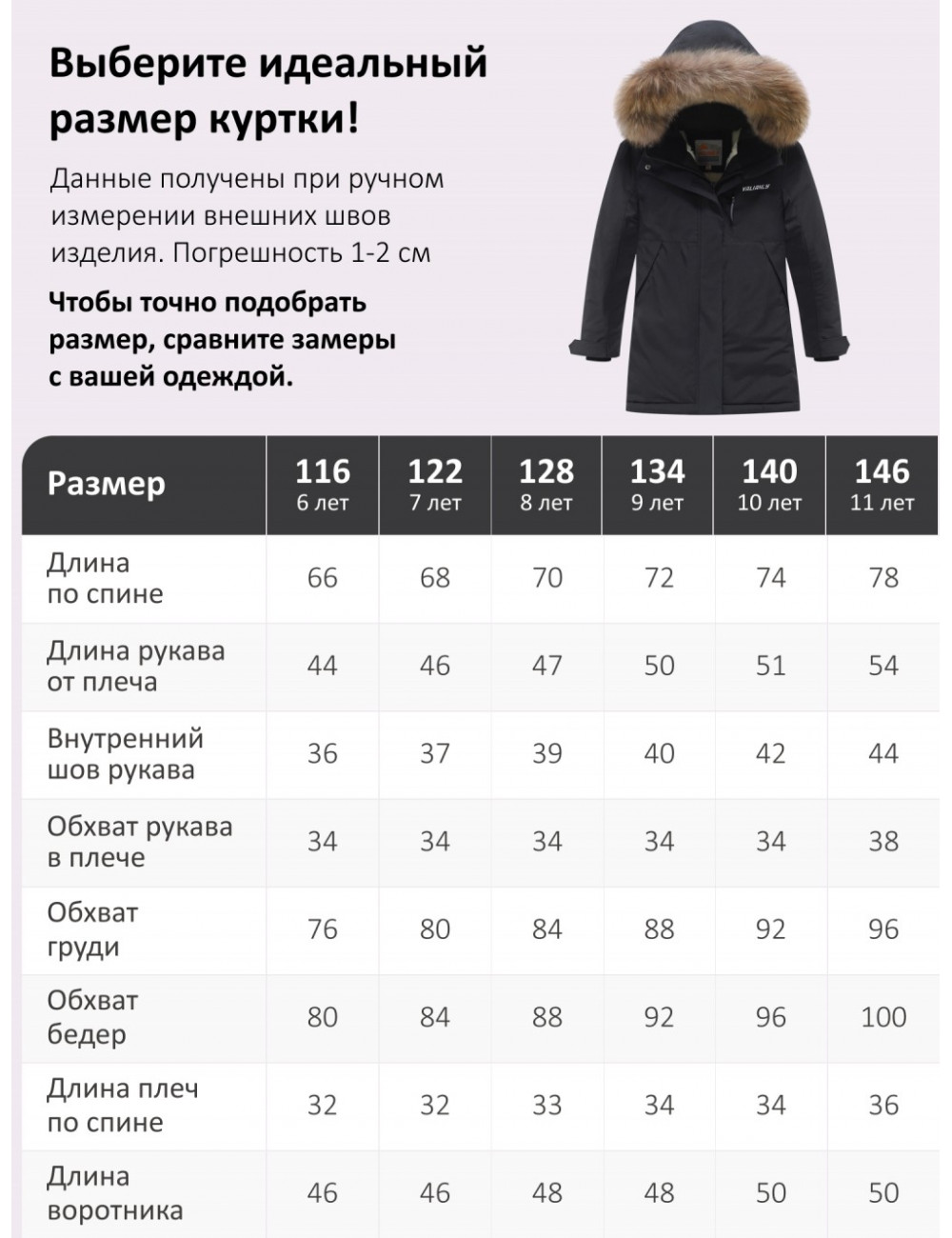 | Декоративные элементы | Манжеты, Мех, Карманы, Съемная опушка |