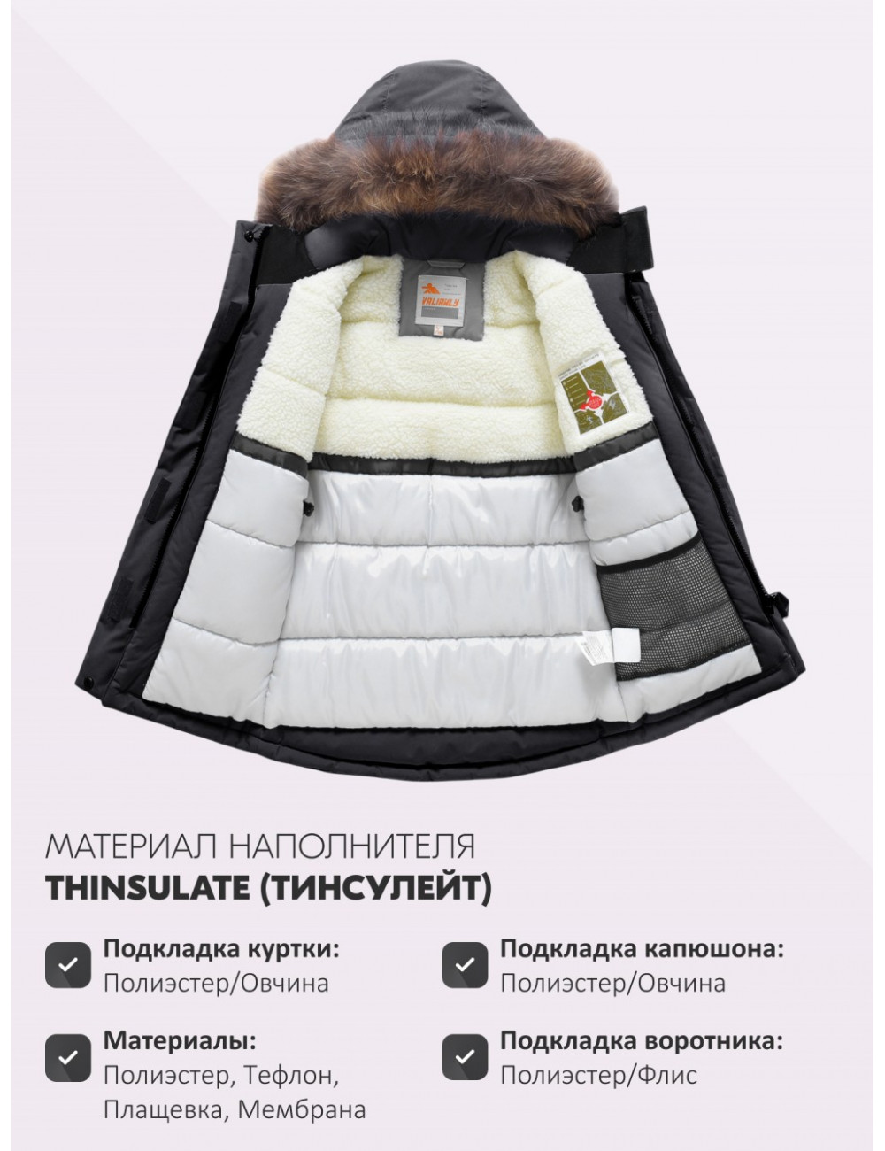 | Материал подкладки капюшона | Полиэстер/Овчина |