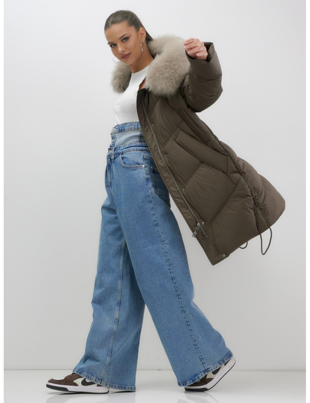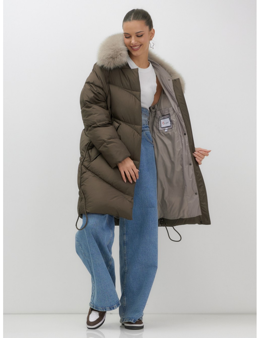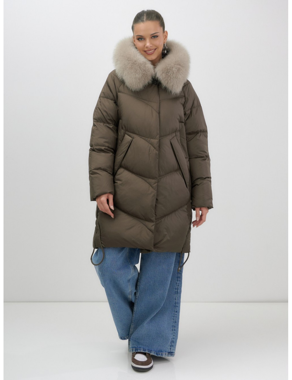 Эти цвета гармонично сочетаются с натуральным мехом песца. Удлинённый силуэт до колена и свободный крой созданы для размеров 46–54. Профессиональный крой обеспечивает безупречную посадку для роста 160–190 см.