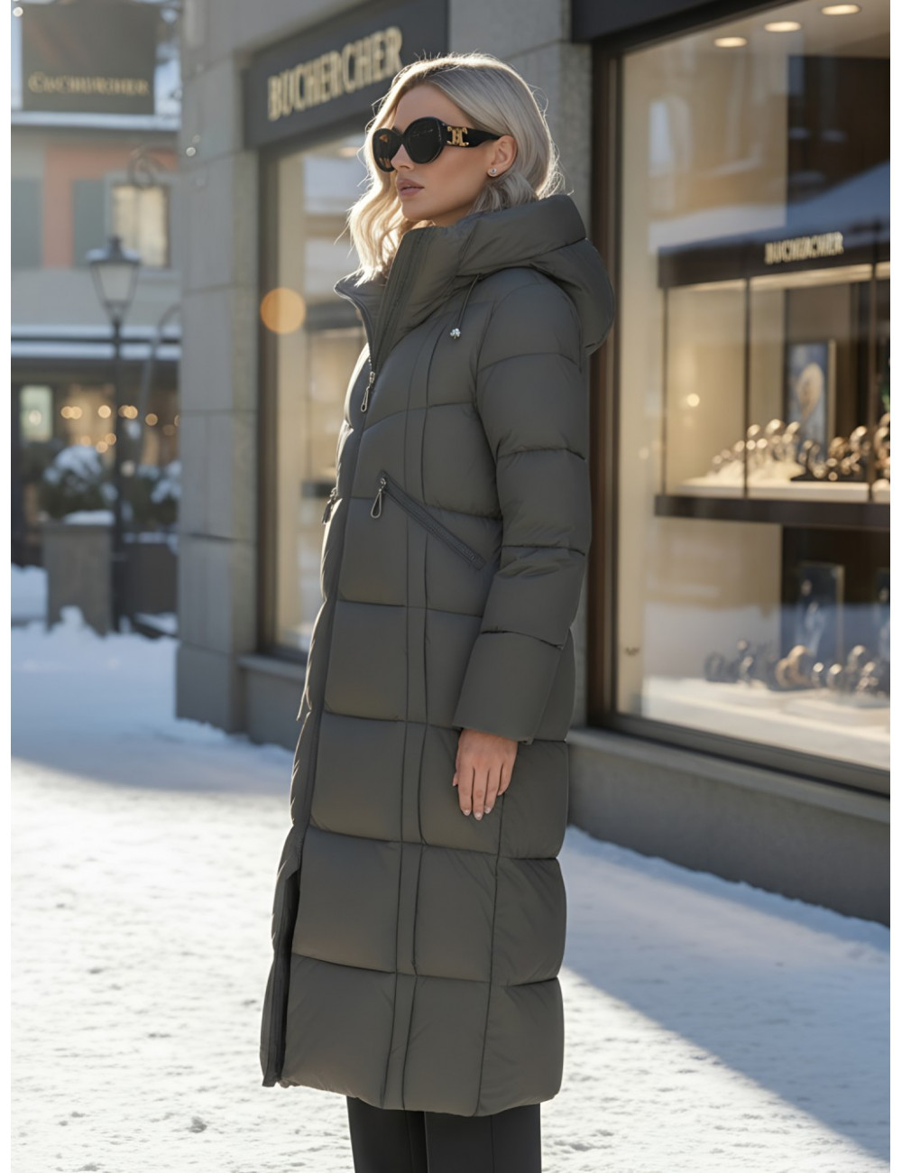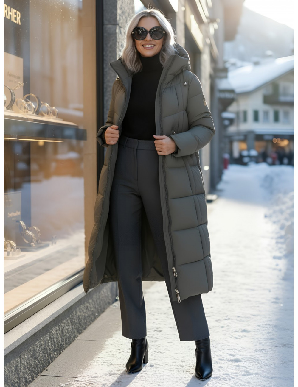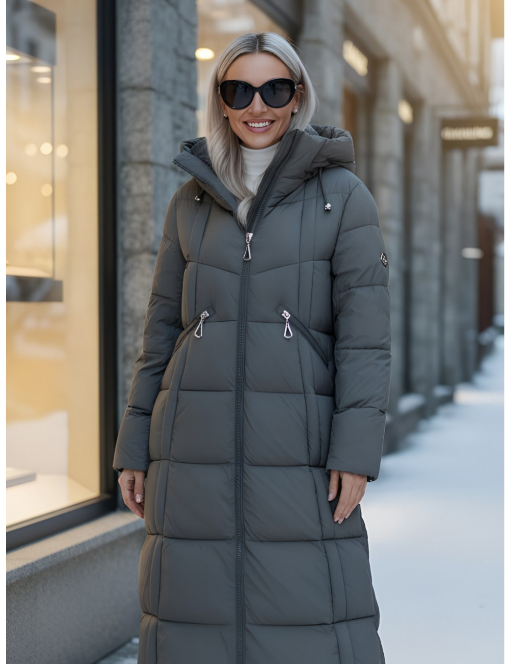 Ищете идеальное зимнее пальто, которое сочетает в себе стиль, комфорт и защиту от холода? Обратите внимание на наш длинный пуховик с капюшоном! Он станет вашим верным спутником в холодное время года и обеспечит тепло при температуре от 0° до -25°C.