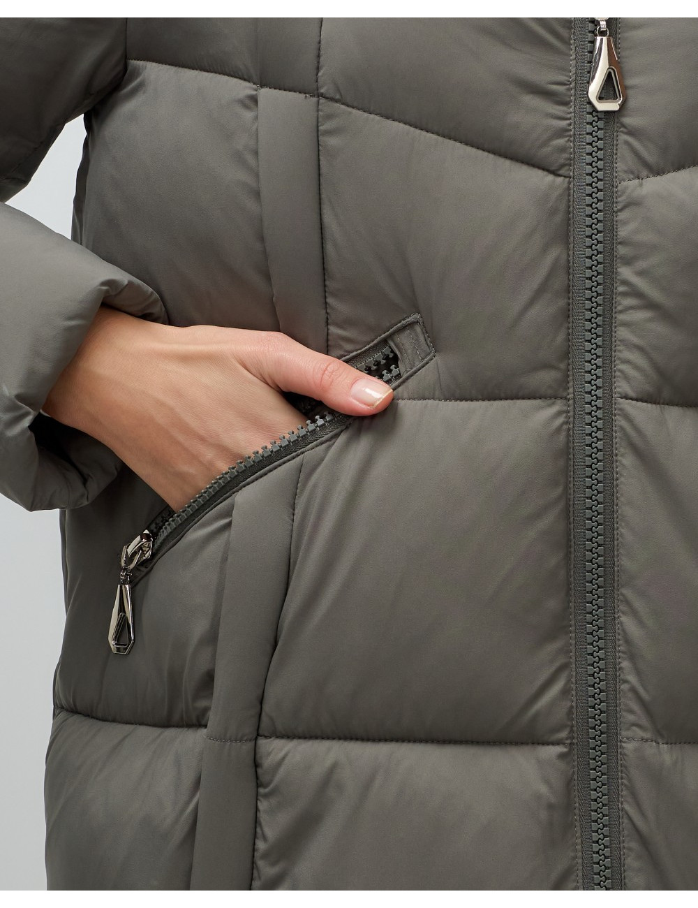 Пуховик доступен в элегантных цветах: тёмно-сером, чёрном, светло-коричневом и коричневом, что позволяет легко комбинировать его с различной одеждой.
