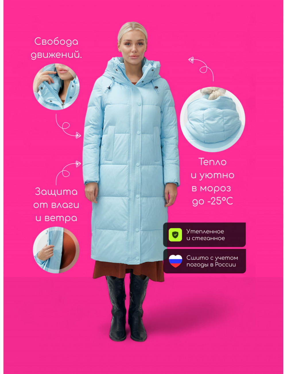Пуховик с длиной ниже колена и прямым кроем создаёт элегантный и современный силуэт, подходящий для любого случая. Он станет вашим идеальным спутником в холодные дни, сочетая в себе безупречный стиль и функциональность.