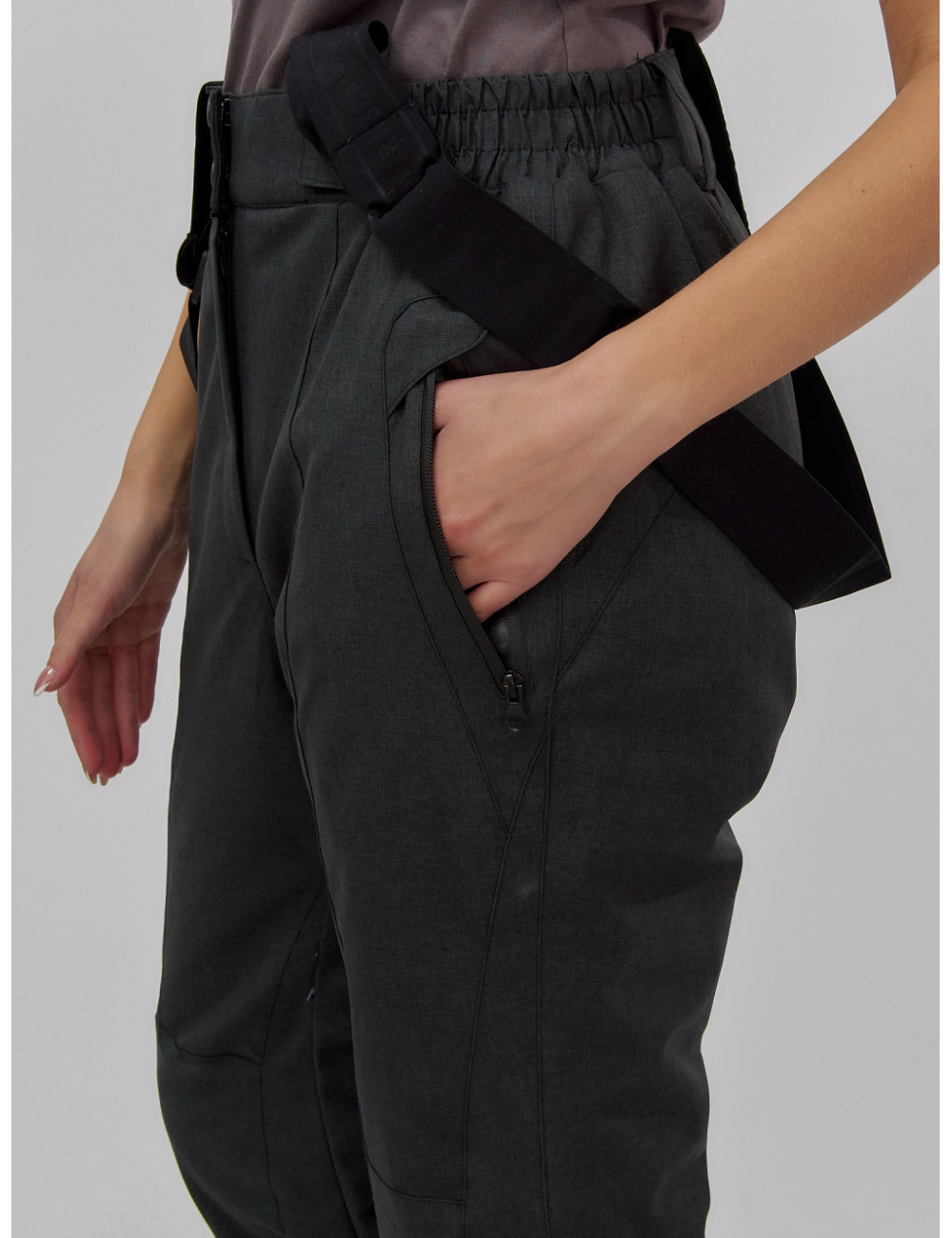 Ответ: да, брюки оснащены прорезным карманом на молнии и снегозащитными гамаши.