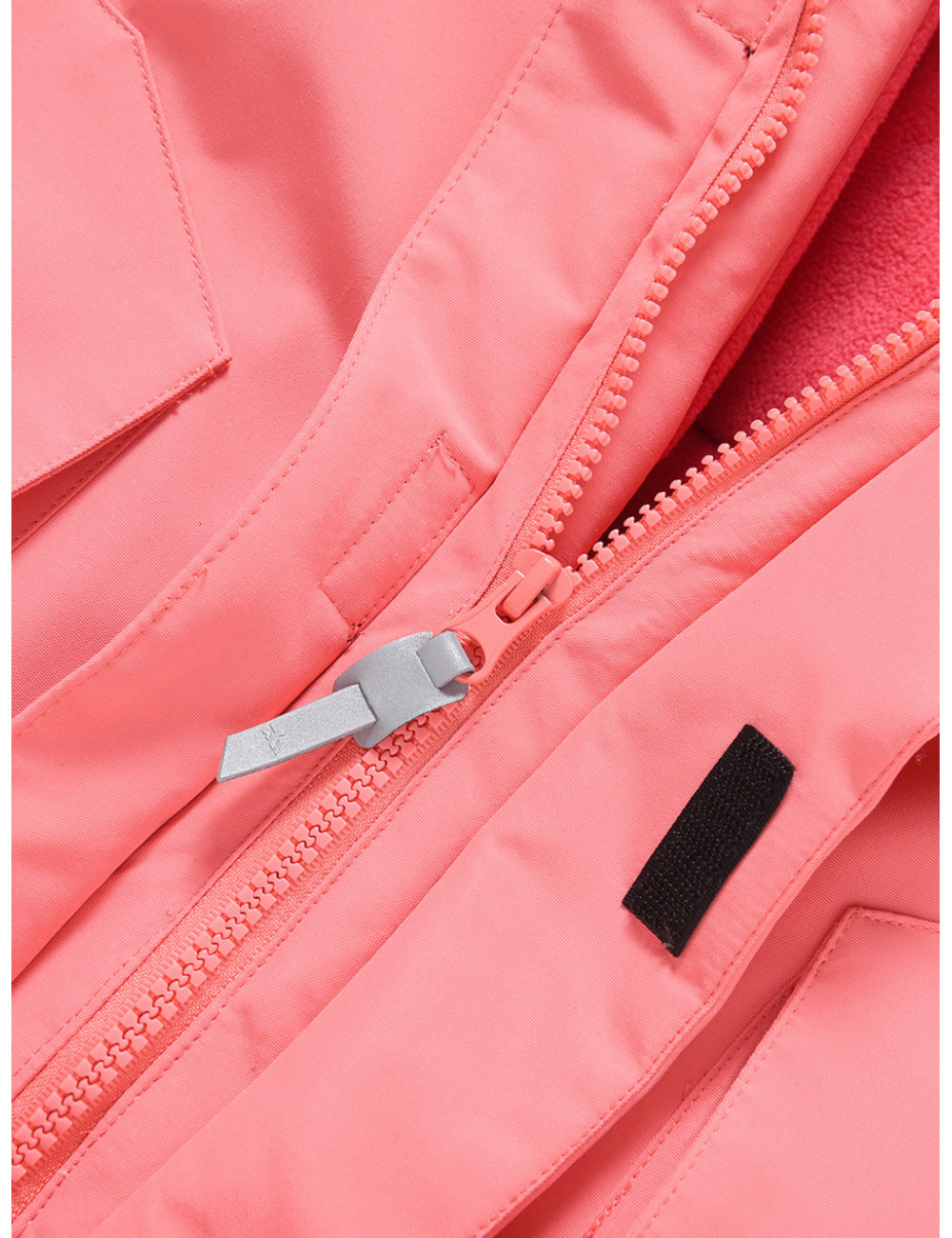 Ответ: утеплённый капюшон, воротник-стойка, флисовая подкладка и ветрозащитная планка создают комфортный микроклимат и защищают от холода.