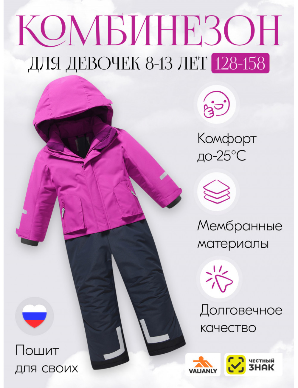 Комбинезон идеально подходит для катания на лыжах и сноуборде, прогулок и игр на свежем воздухе в зимний период.