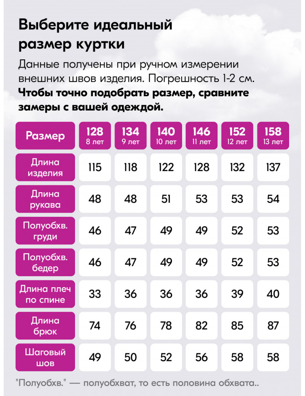| Подростковый S (146) | 140 - 146 | 10 - 11 лет |