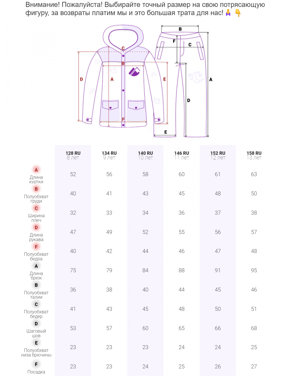 | Подростковый M (152) | 146 - 152 | 12 - 13 лет |