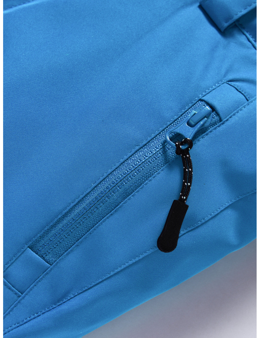 Полукомбинезон имеет регулируемые бретели и съёмную спинку на молнии. Лямки на липучках, прорезные боковые карманы на молнии, утяжка на липучке в поясе и шлёвки для ремня делают его удобным и функциональным.