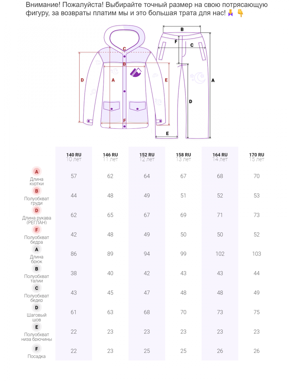 | Подростковый S (146) | 140 - 146 | 10 - 11 лет |