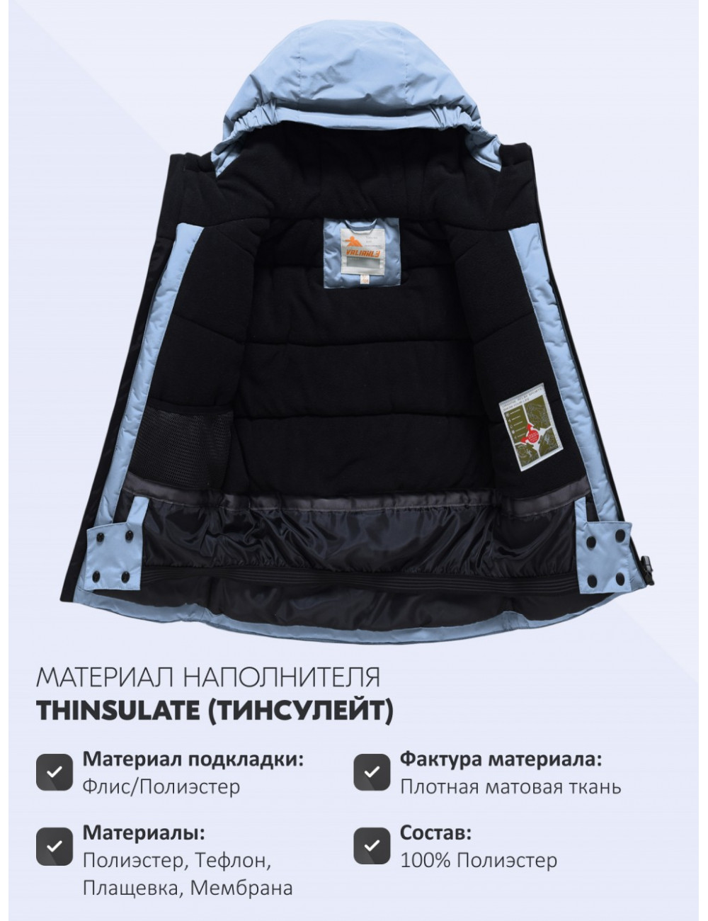 | Материал подкладки куртки | Флис и гладкий полиэстер |