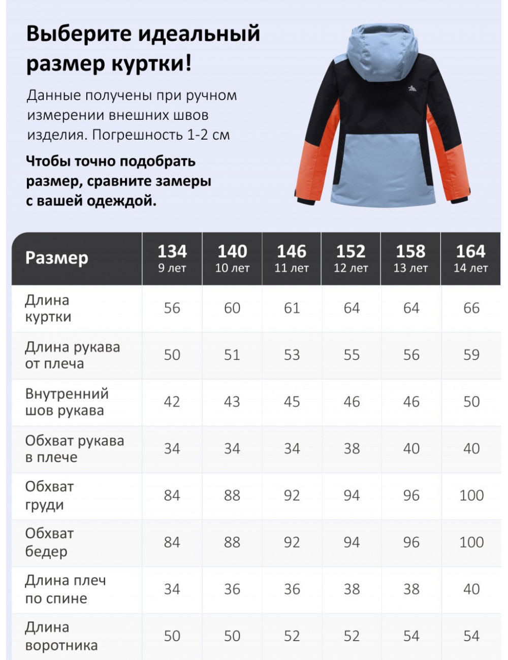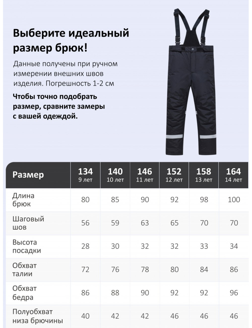 | Подростковый M (152) | 146 - 152 | 12 - 13 лет |
