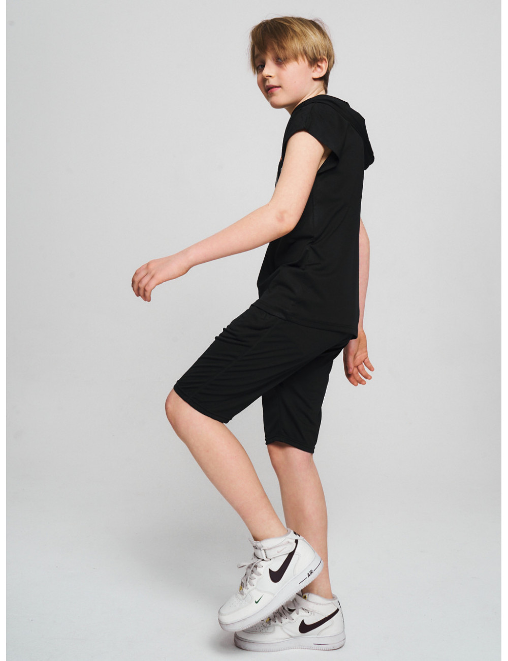 Летний спортивный костюм двойка от Ketsi — идеальный выбор для активных подростков. Этот стильный и комфортный комплект включает в себя футболку на молнии и эластичные шорты.