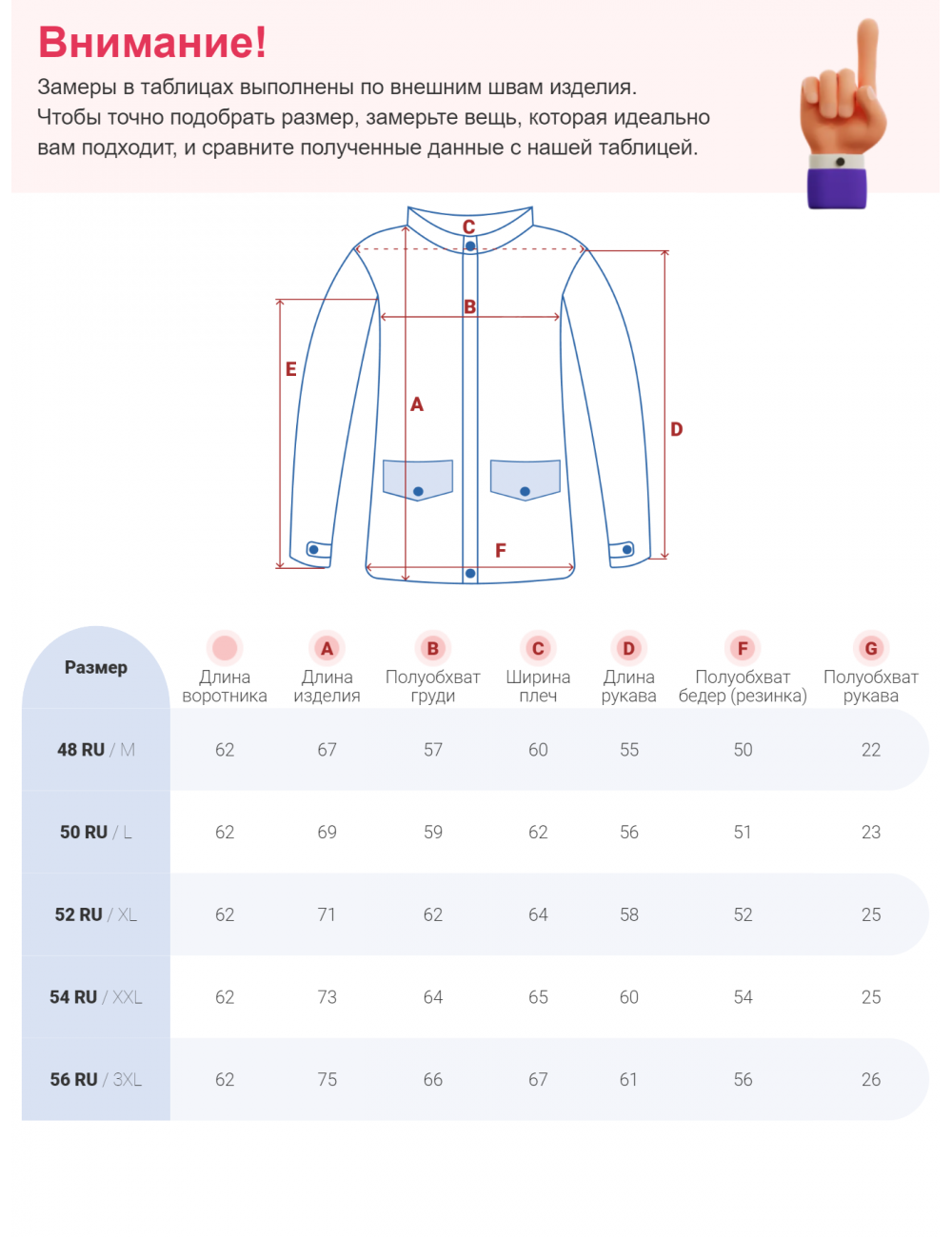 При выборе размера рекомендуем ориентироваться на таблицу размеров, чтобы подобрать идеальный вариант.