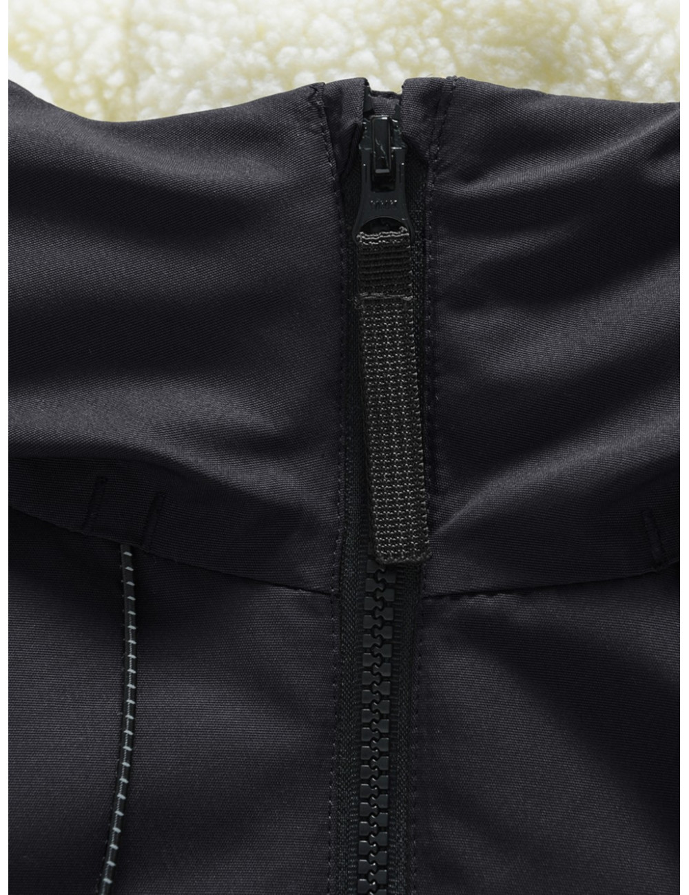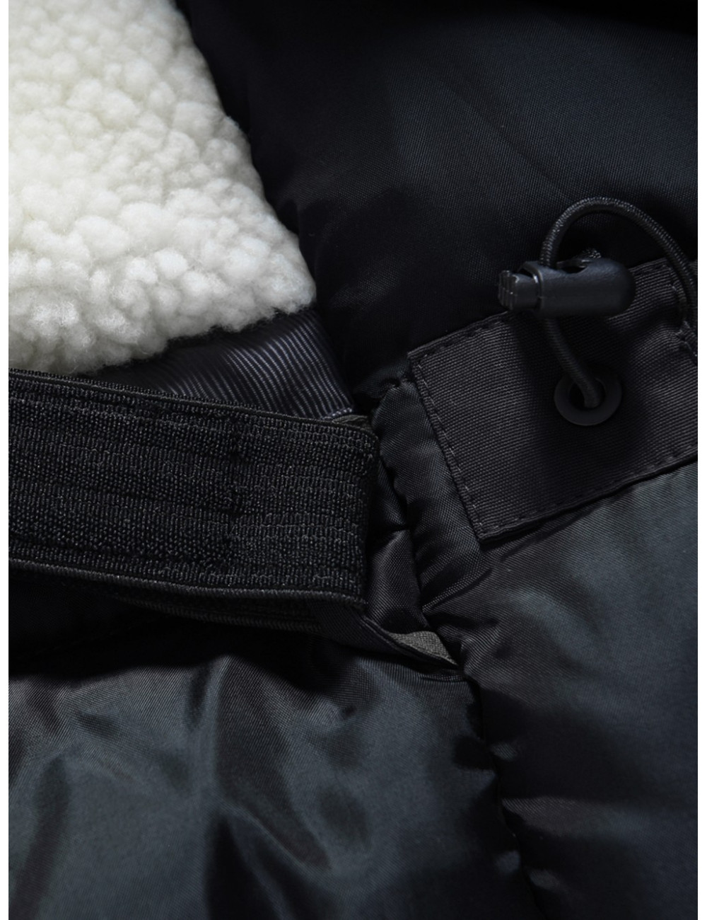 Внутренняя подкладка из овчины, полиэстера и флиса делает парку тёплой и уютной. Несъёмный капюшон надёжно защищает от снега и ветра, а воротник-стойка прикрывает шею. Регулируемые фиксаторы на рукавах и капюшоне помогают удерживать тепло, а трикотажные манжеты дополнительно блокируют холод.