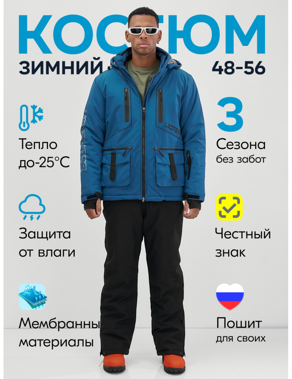 | Фиксаторы | На капюшоне, по низу куртки, на рукавах, по низу брюк |