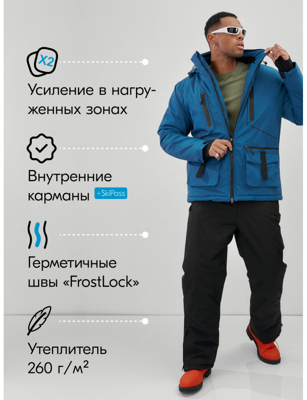 | Особенности полукомбинезона | Съемные регулируемые бретели, флисовая |