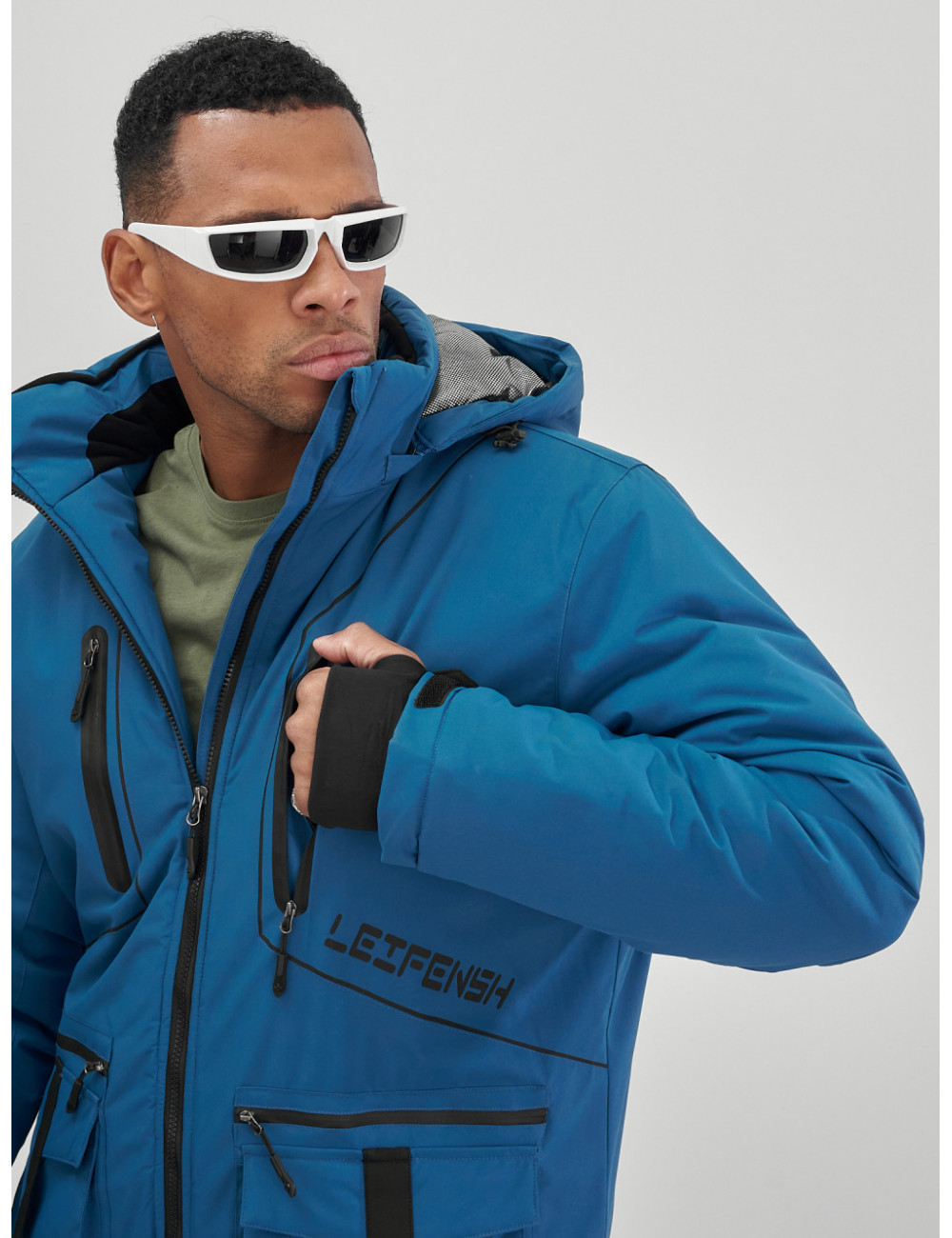 Куртка оснащена съёмным регулируемым капюшоном, который позволяет адаптировать её под любые погодные условия, обеспечивая надёжную защиту от ветра и снега. Высокий воротник защищает шею от холода, создавая дополнительный уют.