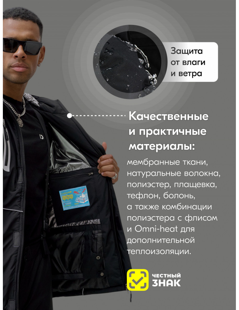 - Водоотталкивающая и дышащая мембрана: обеспечивает защиту от влаги и комфорт во время активных движений.