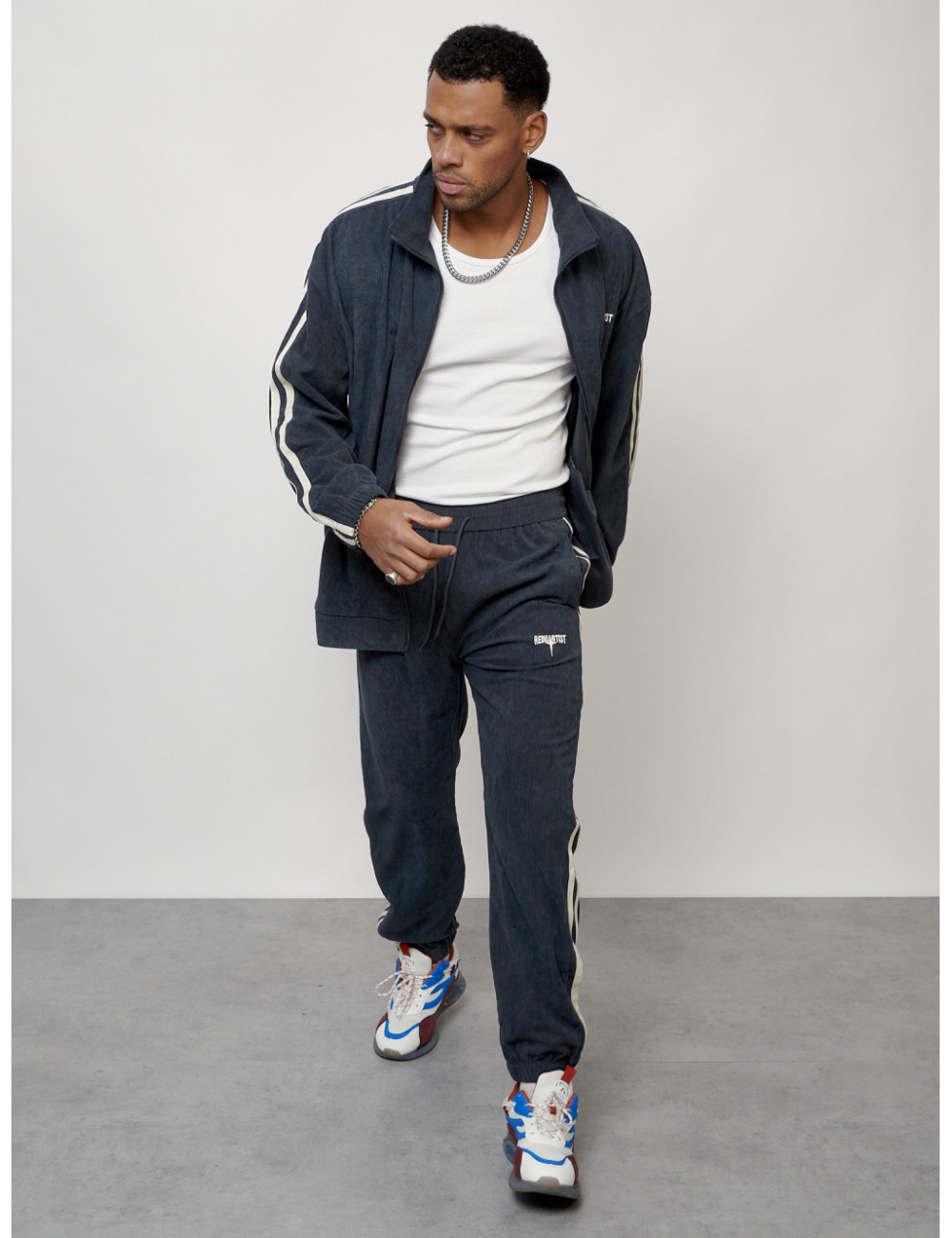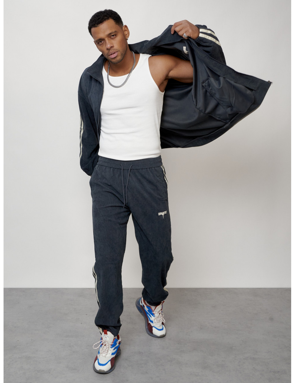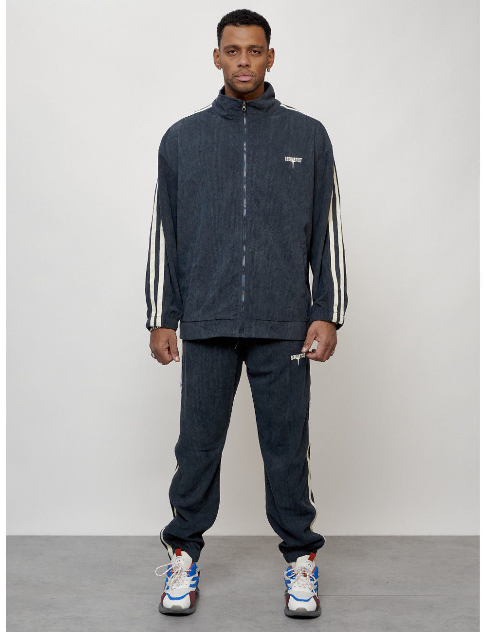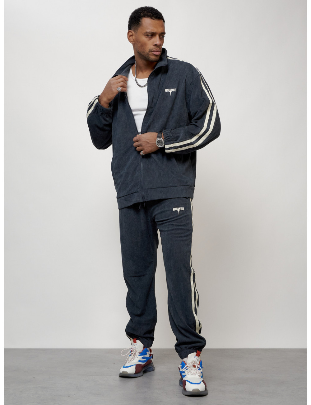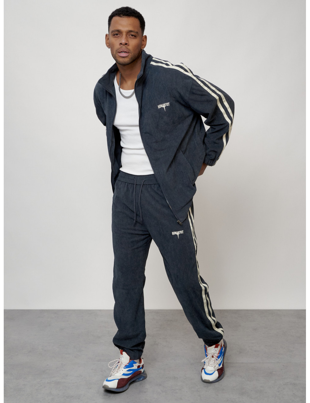 - Дизайн. Однотонный костюм украшен вышитой надписью на груди и декоративными лентами-полосами по боковым швам.