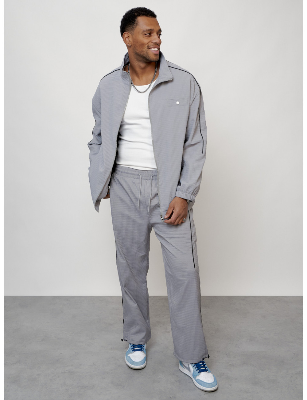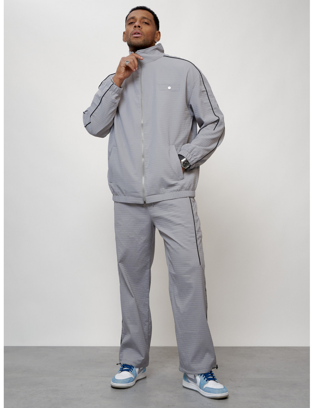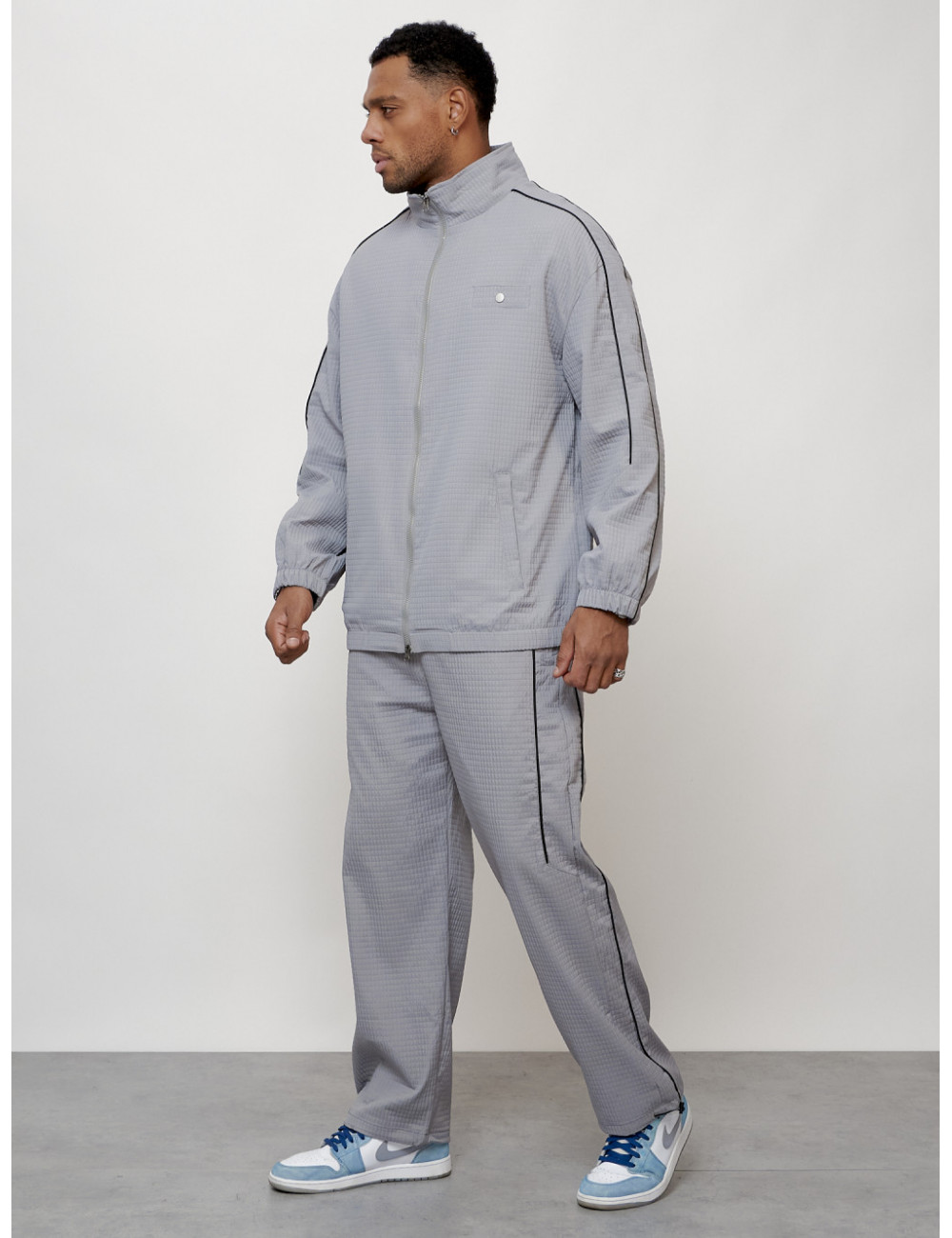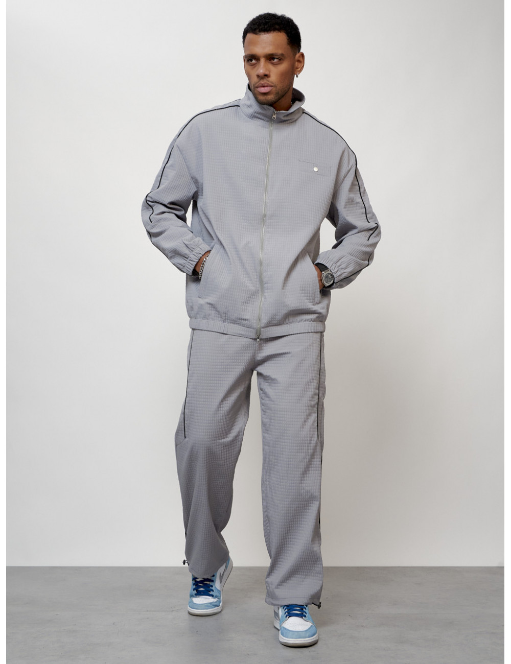 Стильный и удобный костюм для активного отдыха и повседневного использования. Этот комплект состоит из двух частей: олимпийки прямого кроя с воротником-стойкой и брюк из прочного поликристаллического волокна.