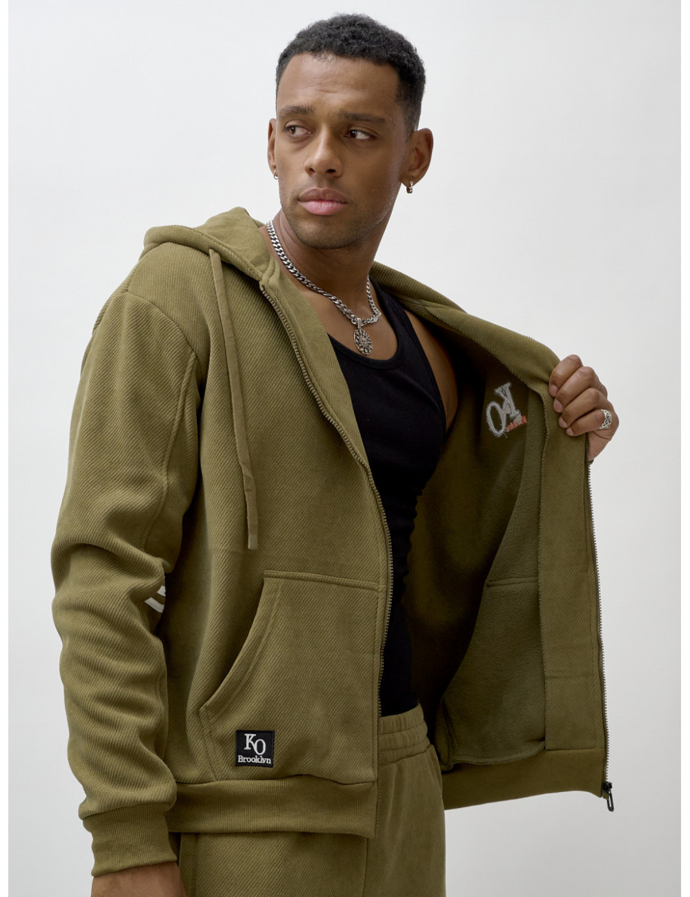 Худи с несъёмным капюшоном и регулируемым шнурком надёжно защищает от ветра. Удобная молния-трактор и накладные боковые карманы делают этот элемент не только стильным, но и функциональным — идеально для хранения мелочей или согревания рук.