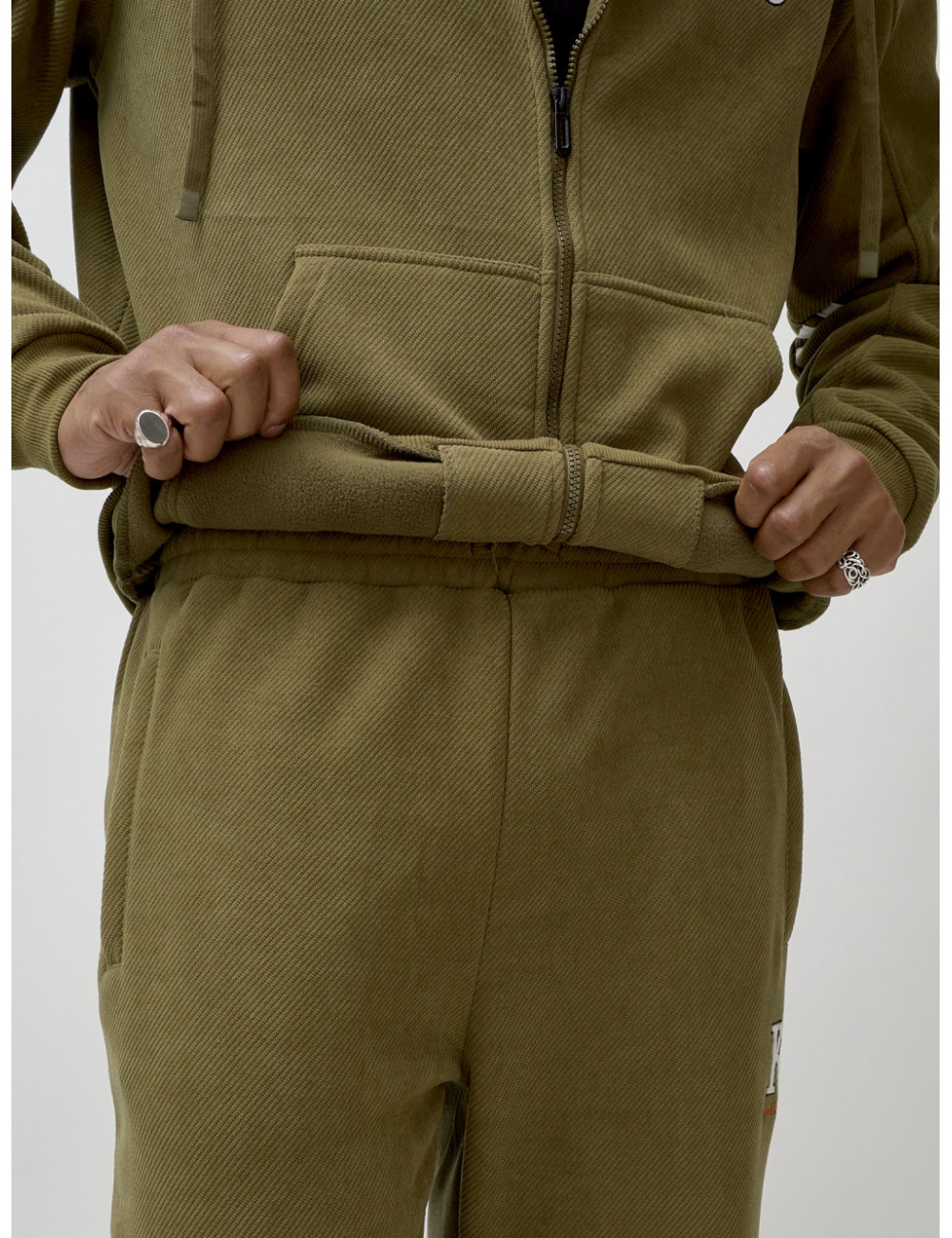Костюм изготовлен из премиального хлопка и прочного полиэстера. Рельефная текстура и мягкая флисовая подкладка обеспечивают приятные ощущения и тепло даже в самые морозные дни.