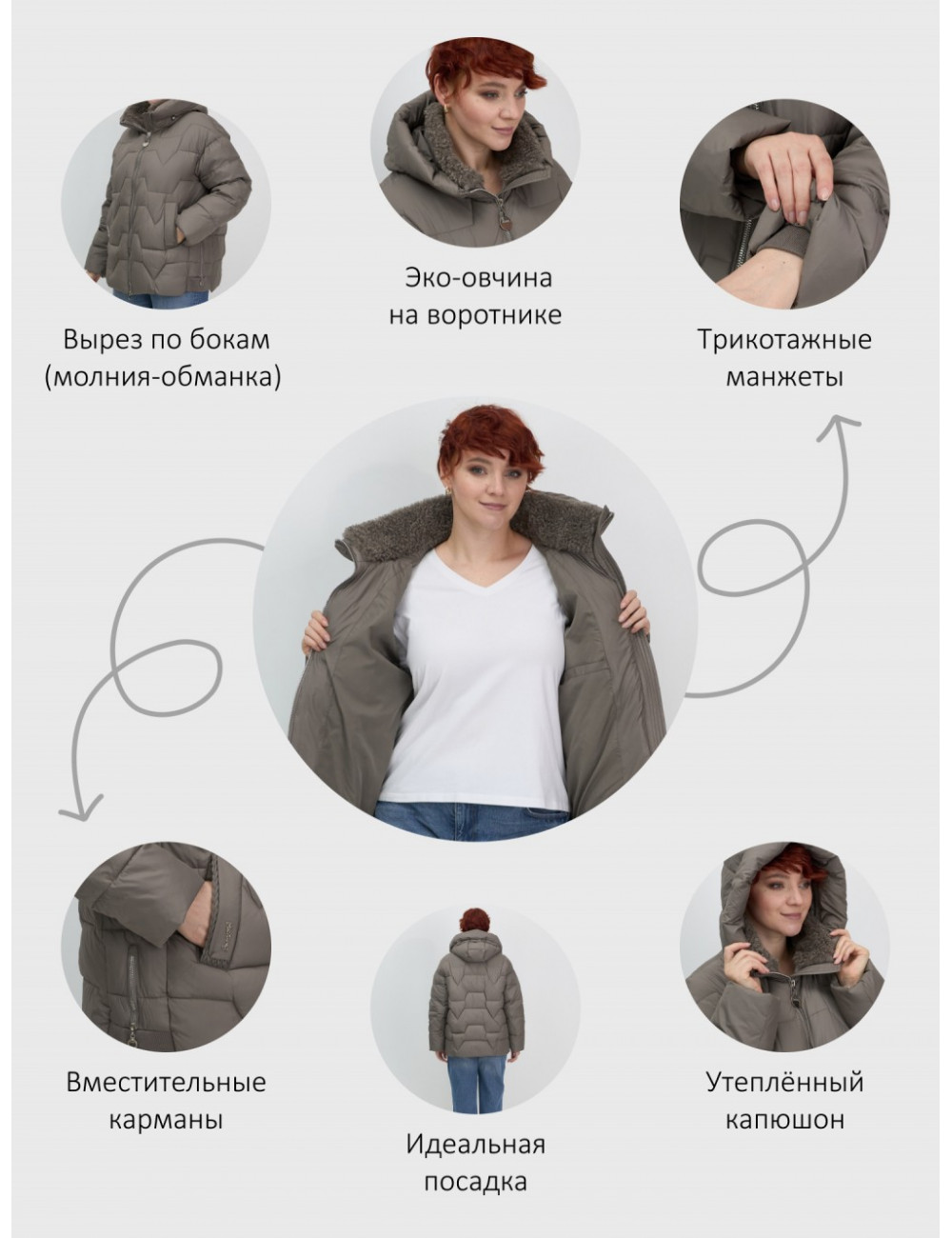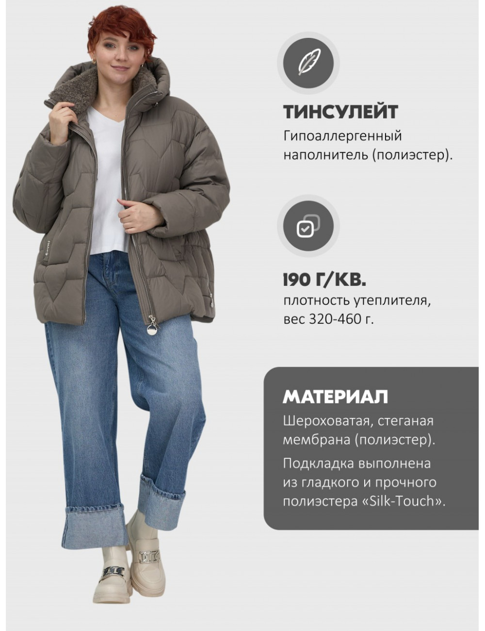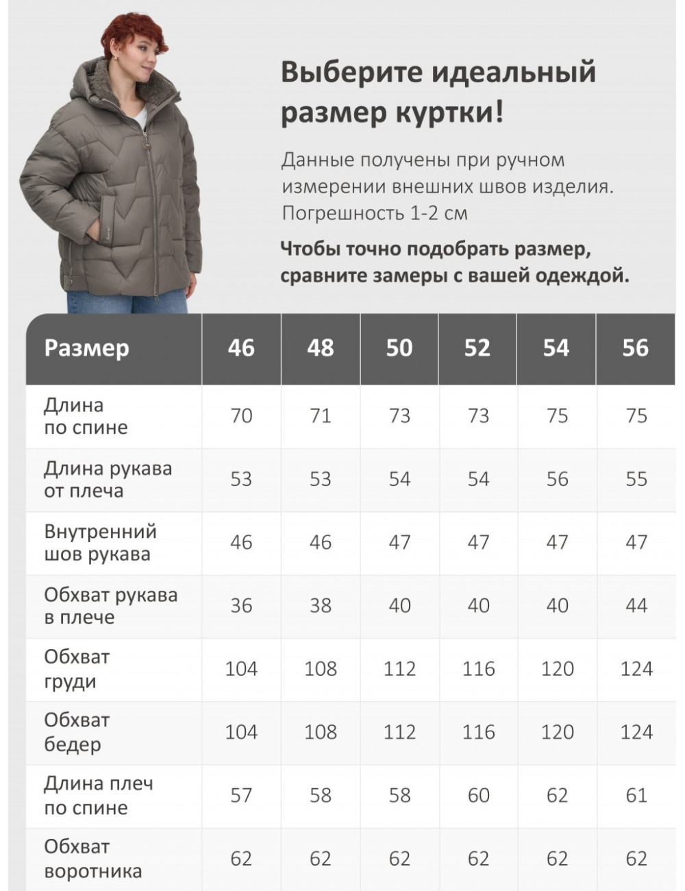 Куртка представлена в размерном ряду от 46 до 56, что позволяет каждой женщине найти свою идеальную модель.