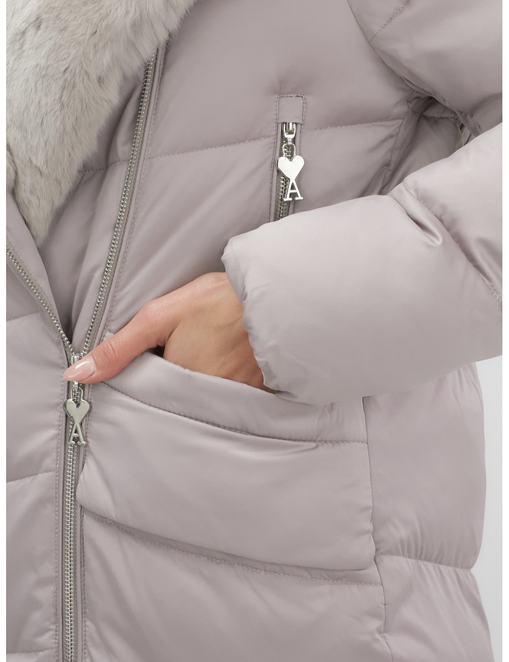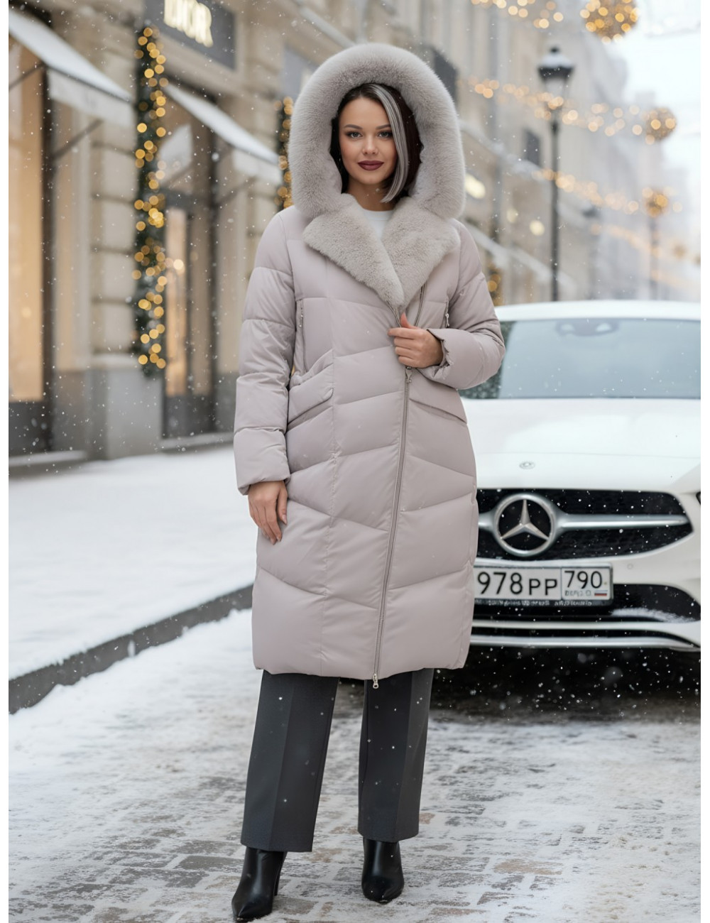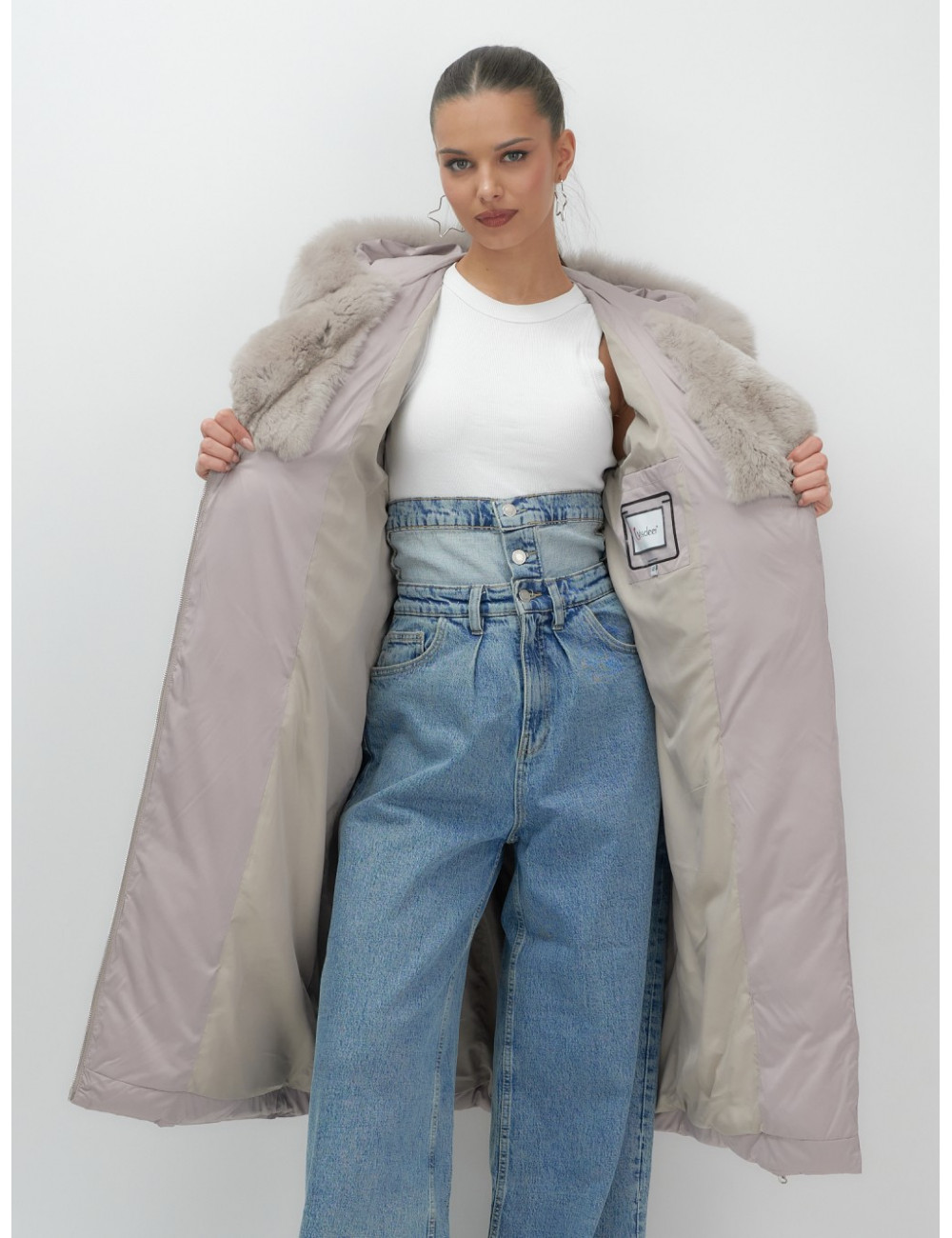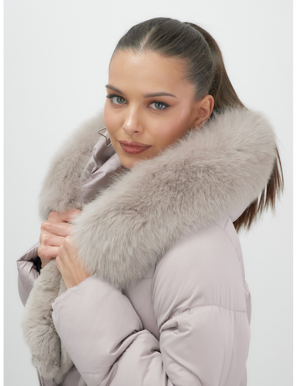 - Воротник и опушка. Изысканный английский воротник из натурального меха кролика и роскошная съёмная опушка из песца создают неповторимый силуэт.
