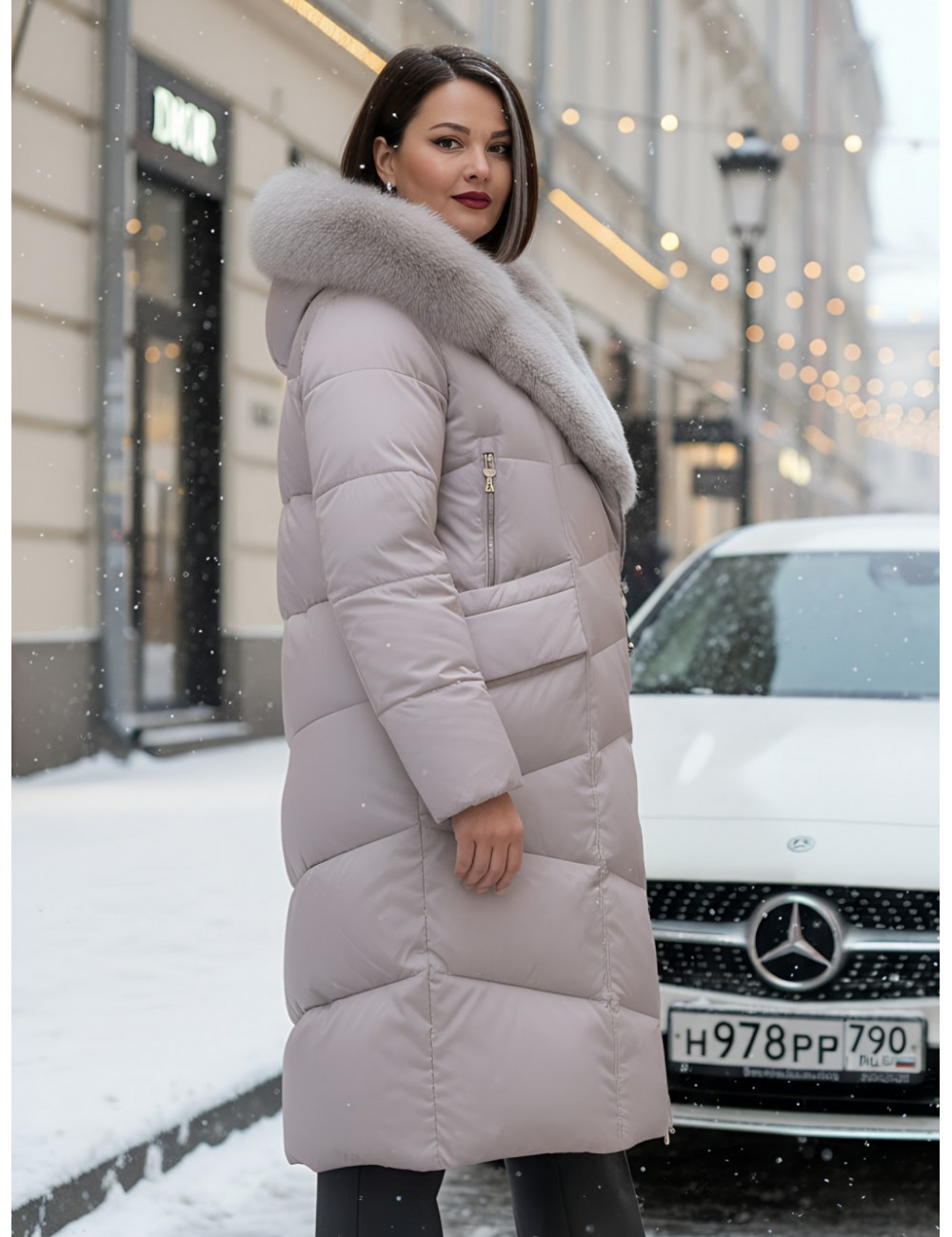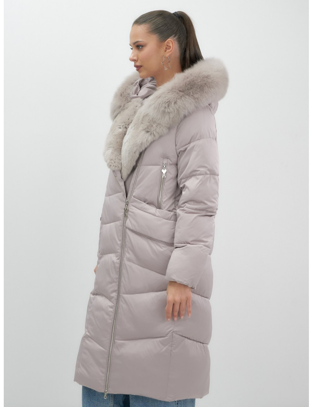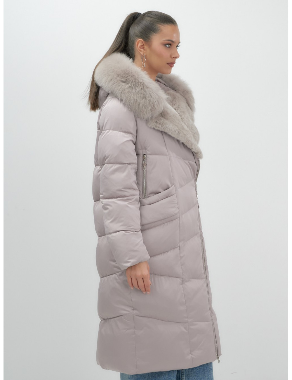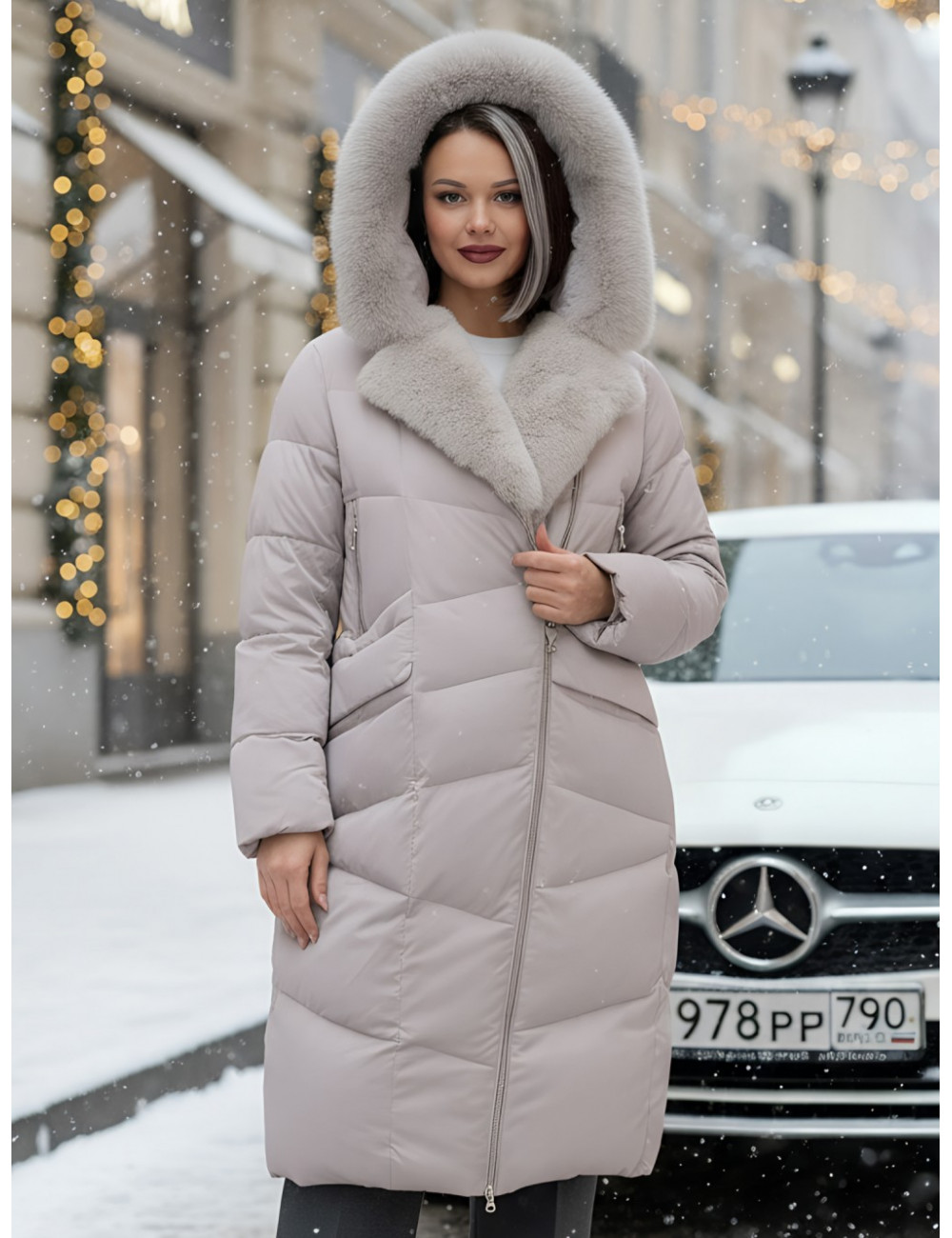 - Воротник и опушка. Изысканный английский воротник из натурального меха кролика и роскошная съёмная опушка из песца создают неповторимый силуэт.