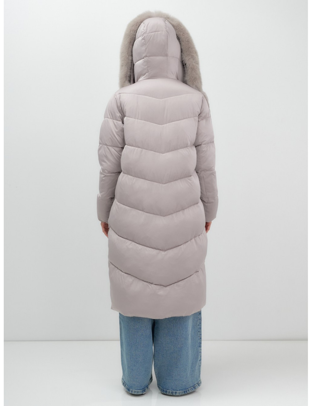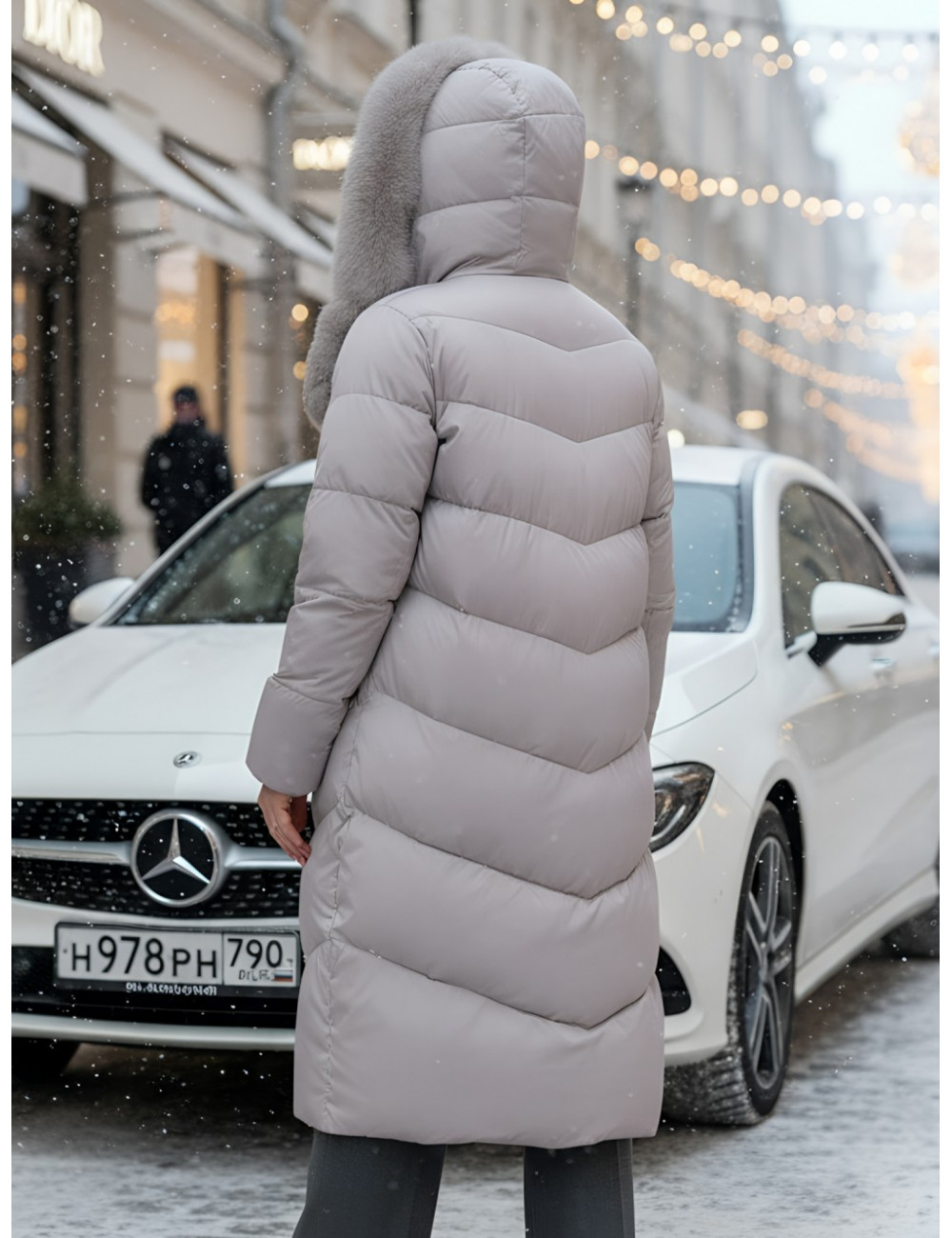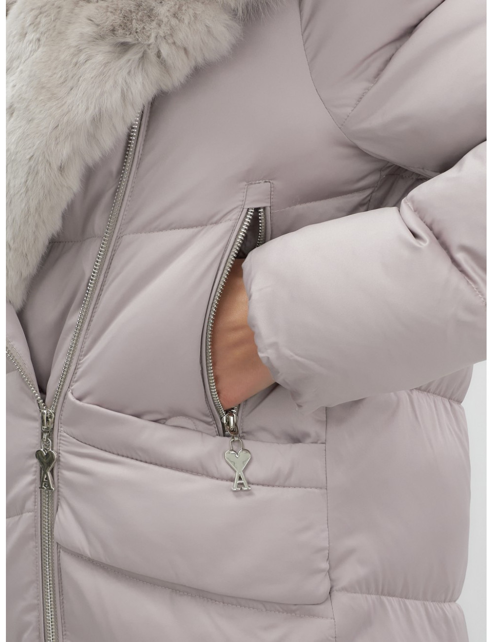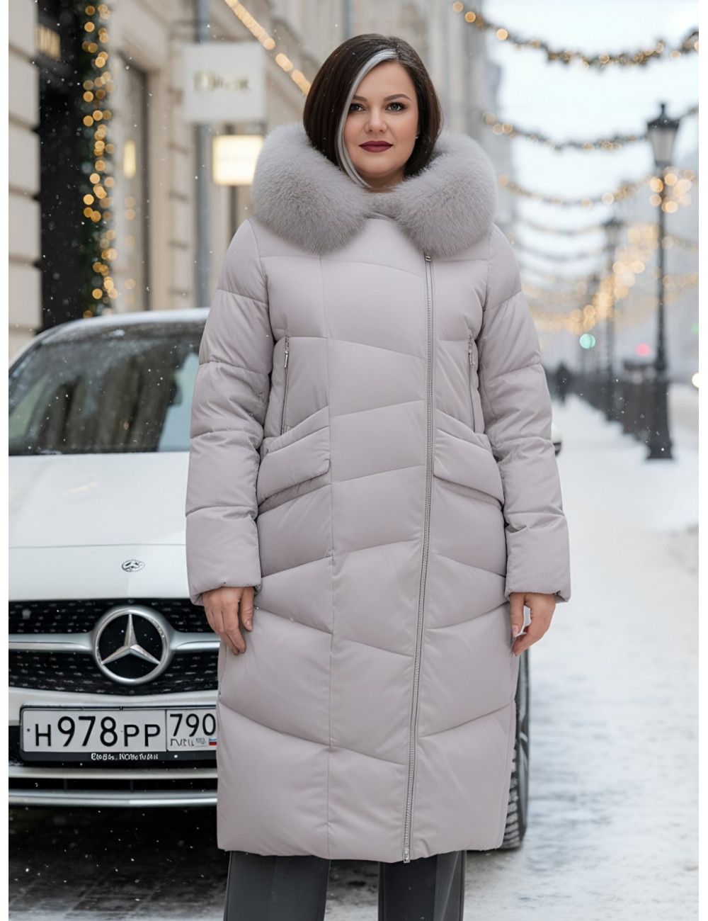 - Воротник и опушка. Изысканный английский воротник из натурального меха кролика и роскошная съёмная опушка из песца создают неповторимый силуэт.