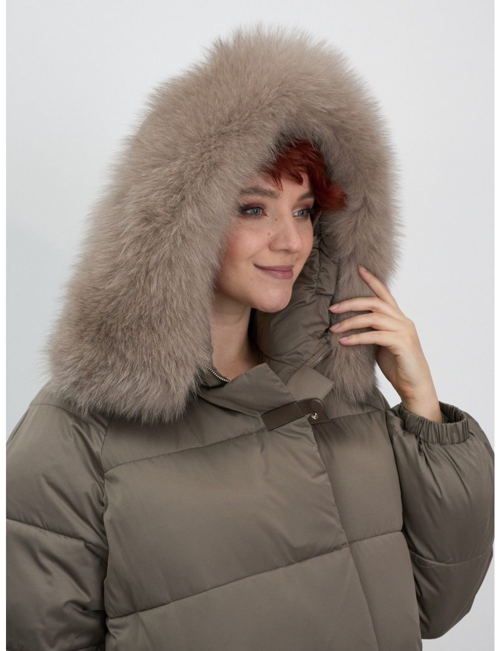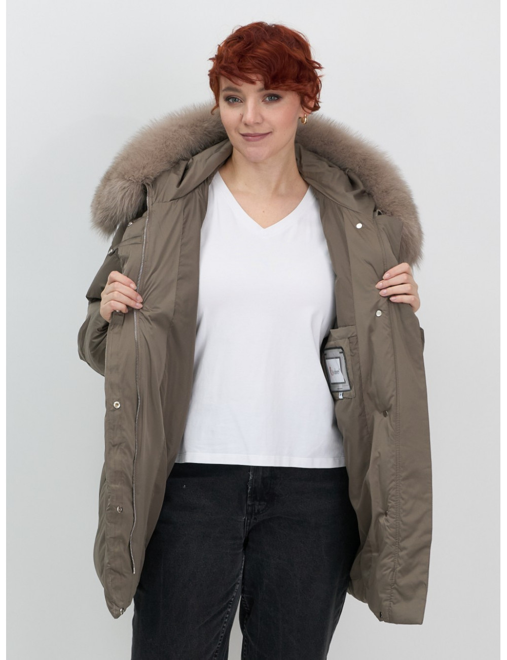 Изысканный и роскошный мех песца, украшающий капюшон, подчеркнёт вашу индивидуальность и безупречный вкус. Съёмная опушка позволяет легко менять стиль с делового на повседневный.