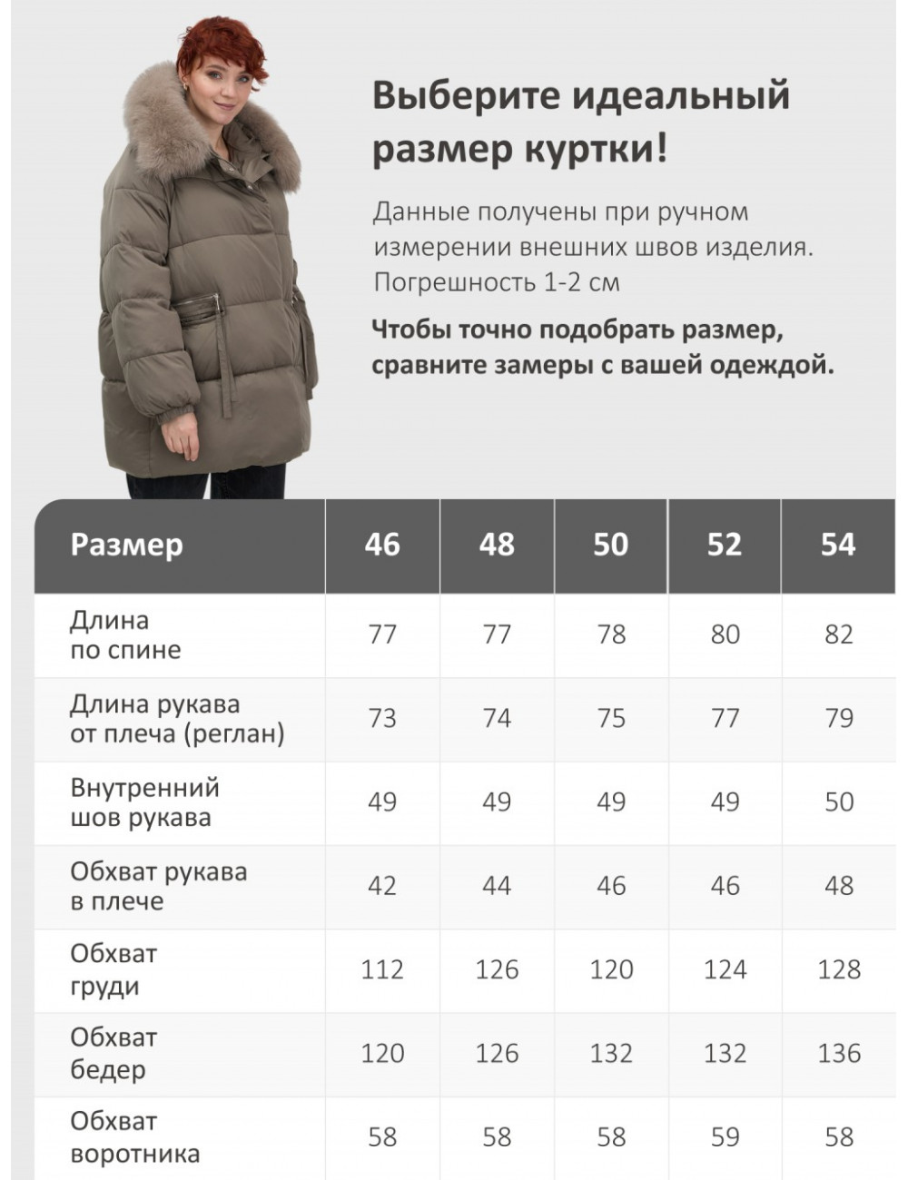 | Комплектация | Куртка/Капюшон/Мех песец натуральный |