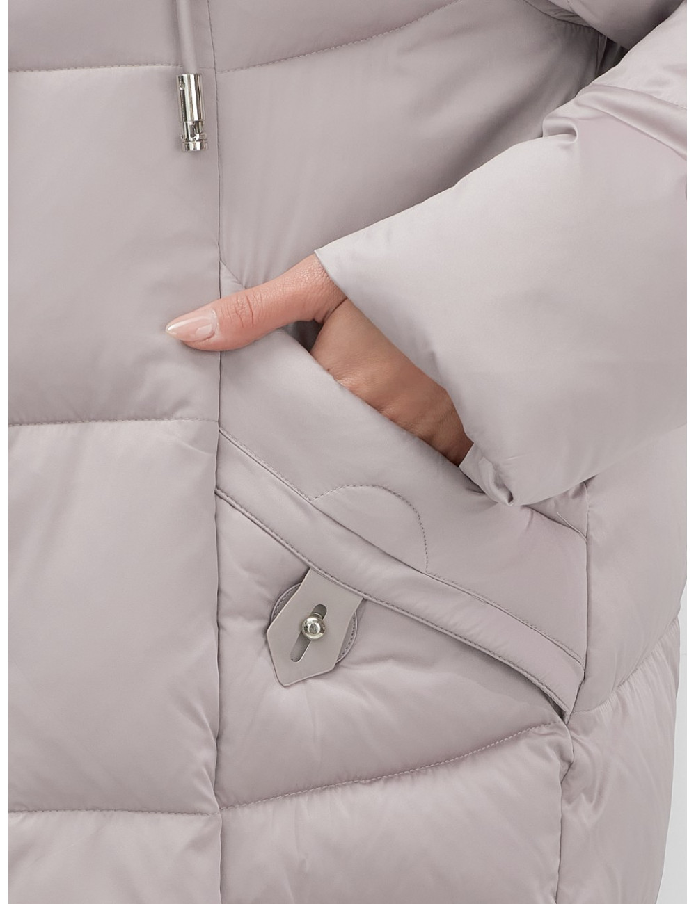 Удлинённый силуэт до колена в сочетании с продуманным кроем создаёт безупречные пропорции. Пуховик идеально садится по фигуре.