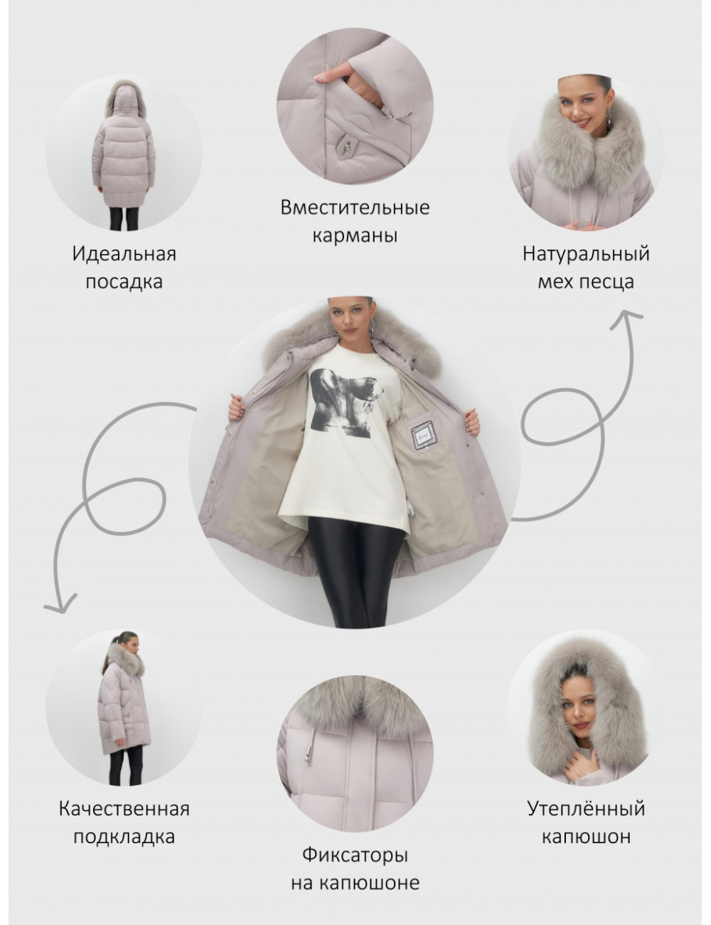 | Материал подкладки капюшона | Мех песец/Полиэстер |