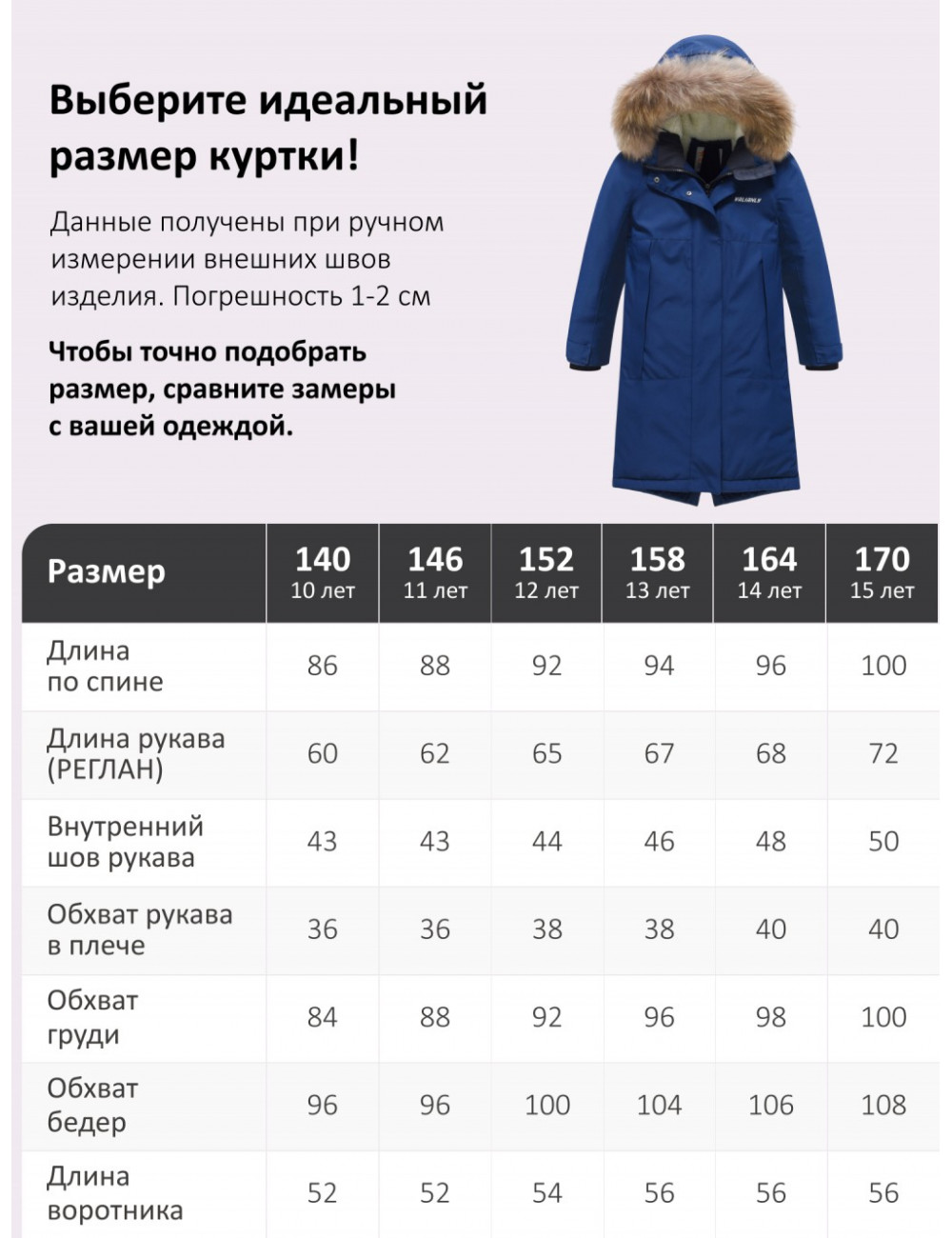 При выборе размера рекомендуем измерить основные параметры — длину куртки, длину рукава, внутренний шов рукава, обхват рукава в плече, обхват груди и обхват бёдер. Это поможет подобрать идеальный вариант.