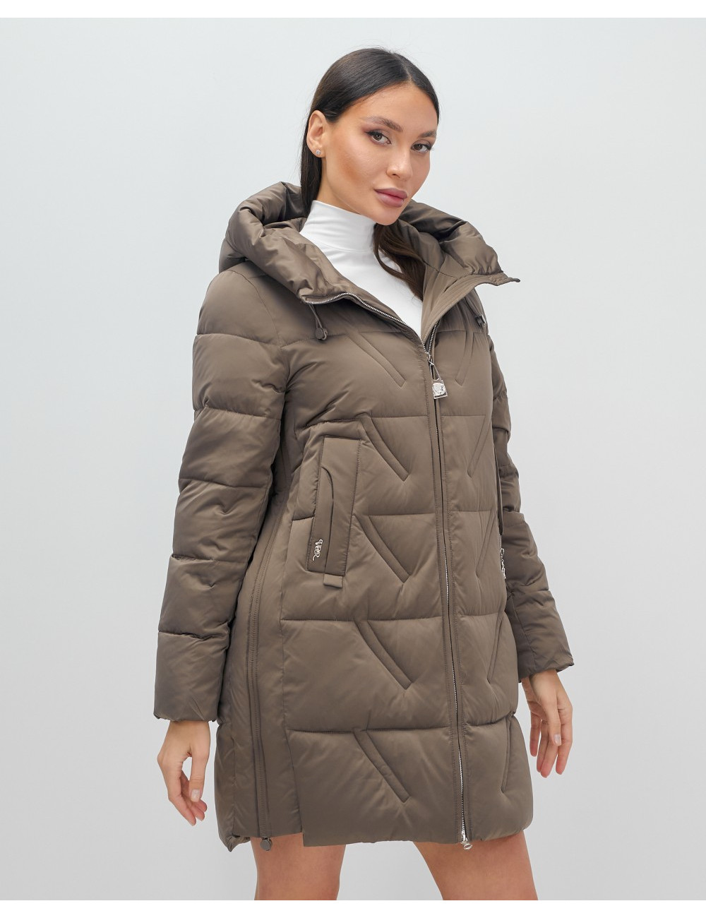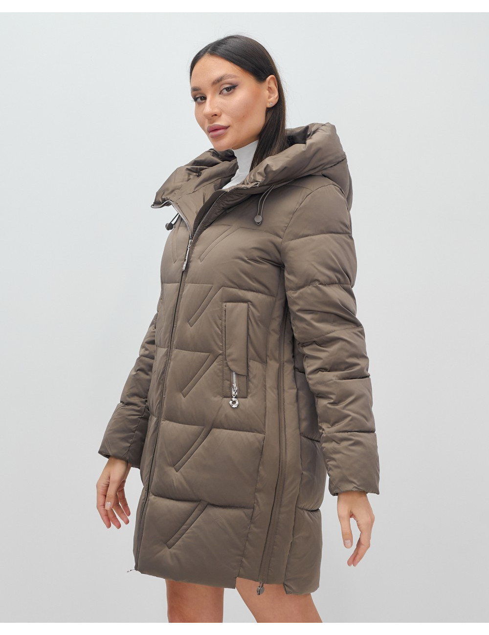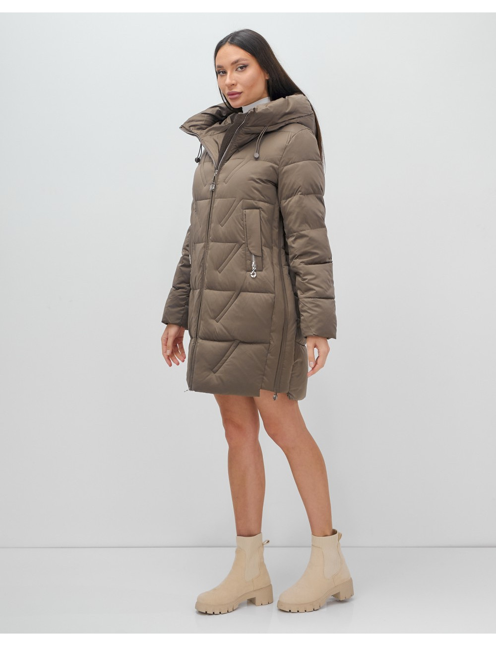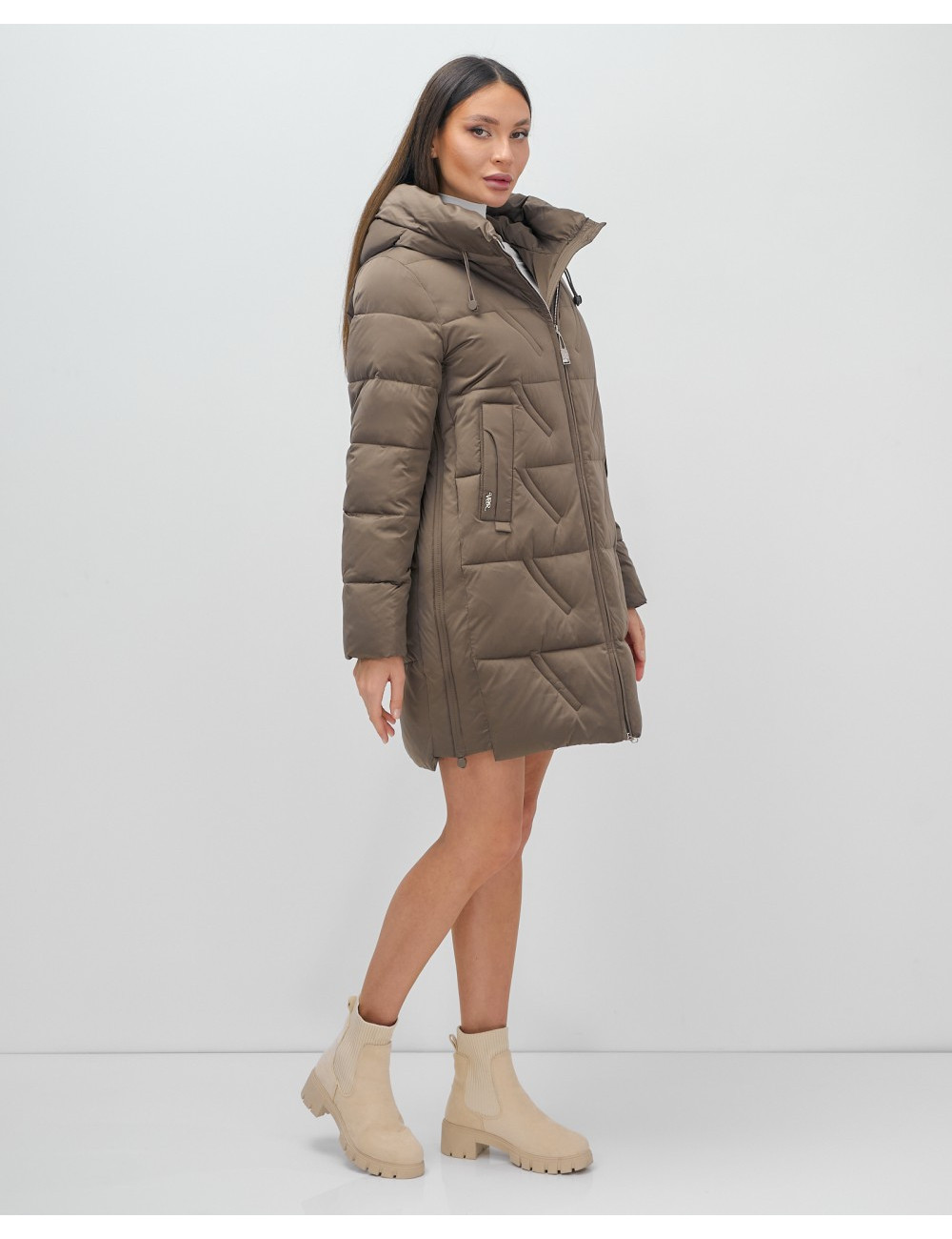 Пуховик имеет среднюю длину до колена, прямой и свободный крой, длинные рукава с манжетами и несъёмный капюшон. Внутренние швы проклеены и прошиты для защиты от ветра, а внутренние карманы и прорезные карманы на кнопках добавляют удобства.