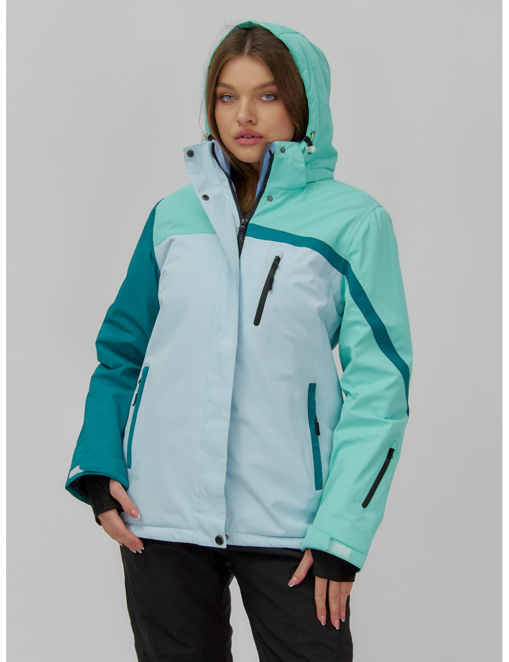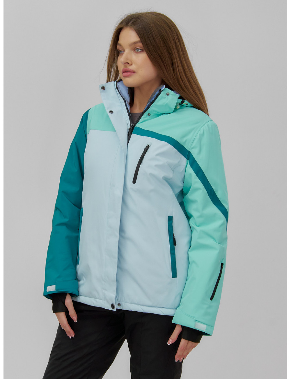 В куртке предусмотрены боковые карманы на молнии и внутренний карман для очков и ски-пасса.