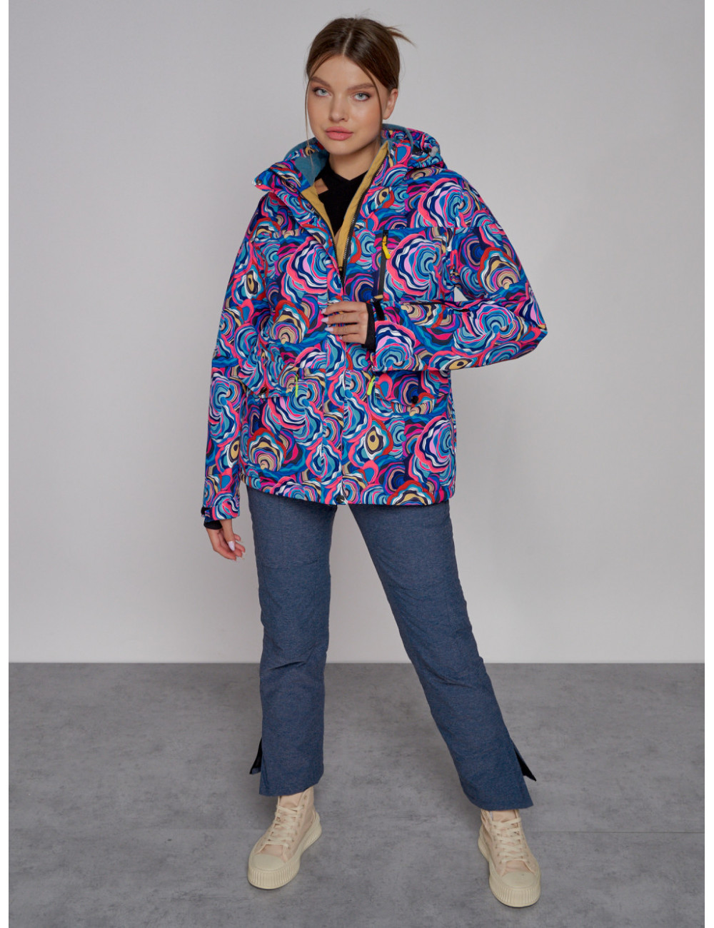 - Цветочный принт добавляет куртке стильный вид и индивидуальность.