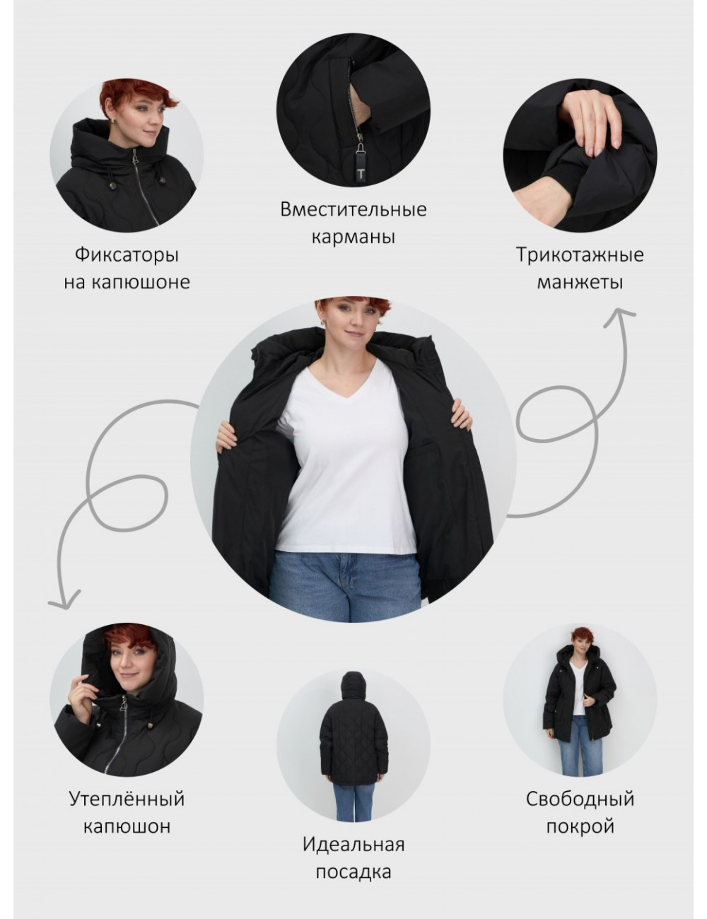 | Декоративные элементы | Капюшон, Карманы, Манжеты, Молния |