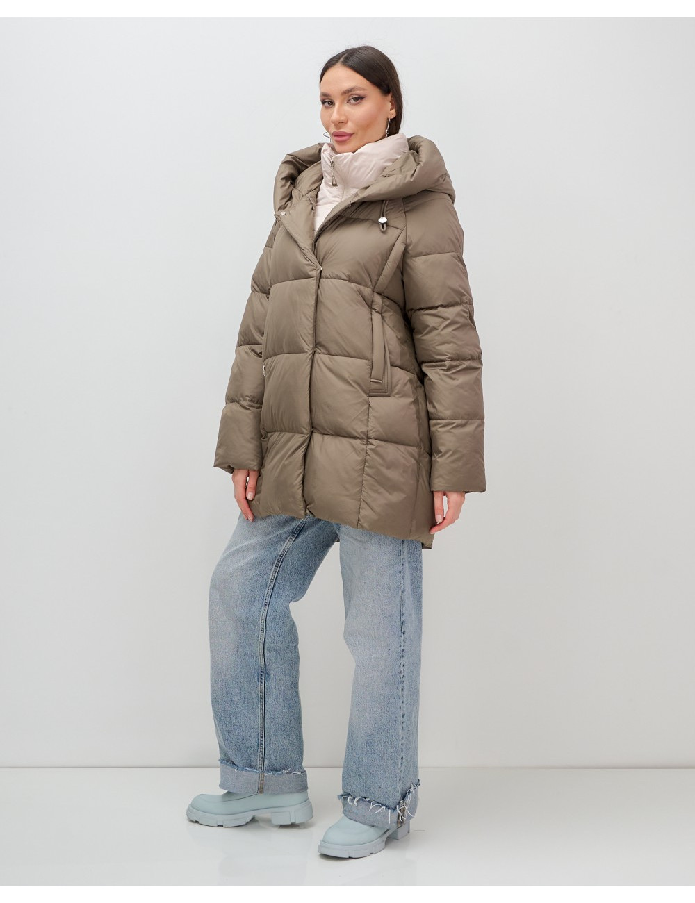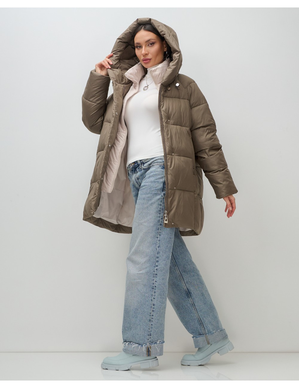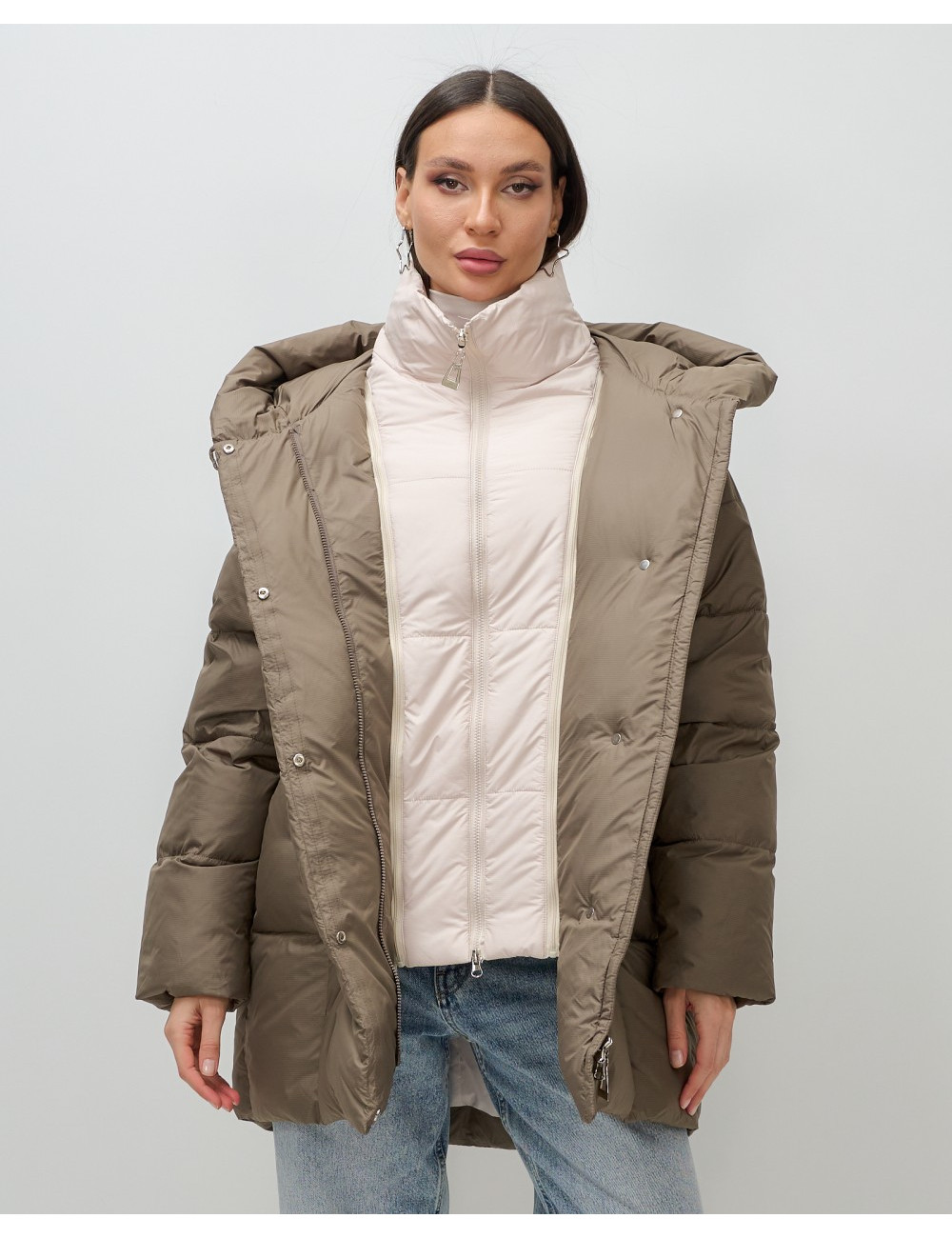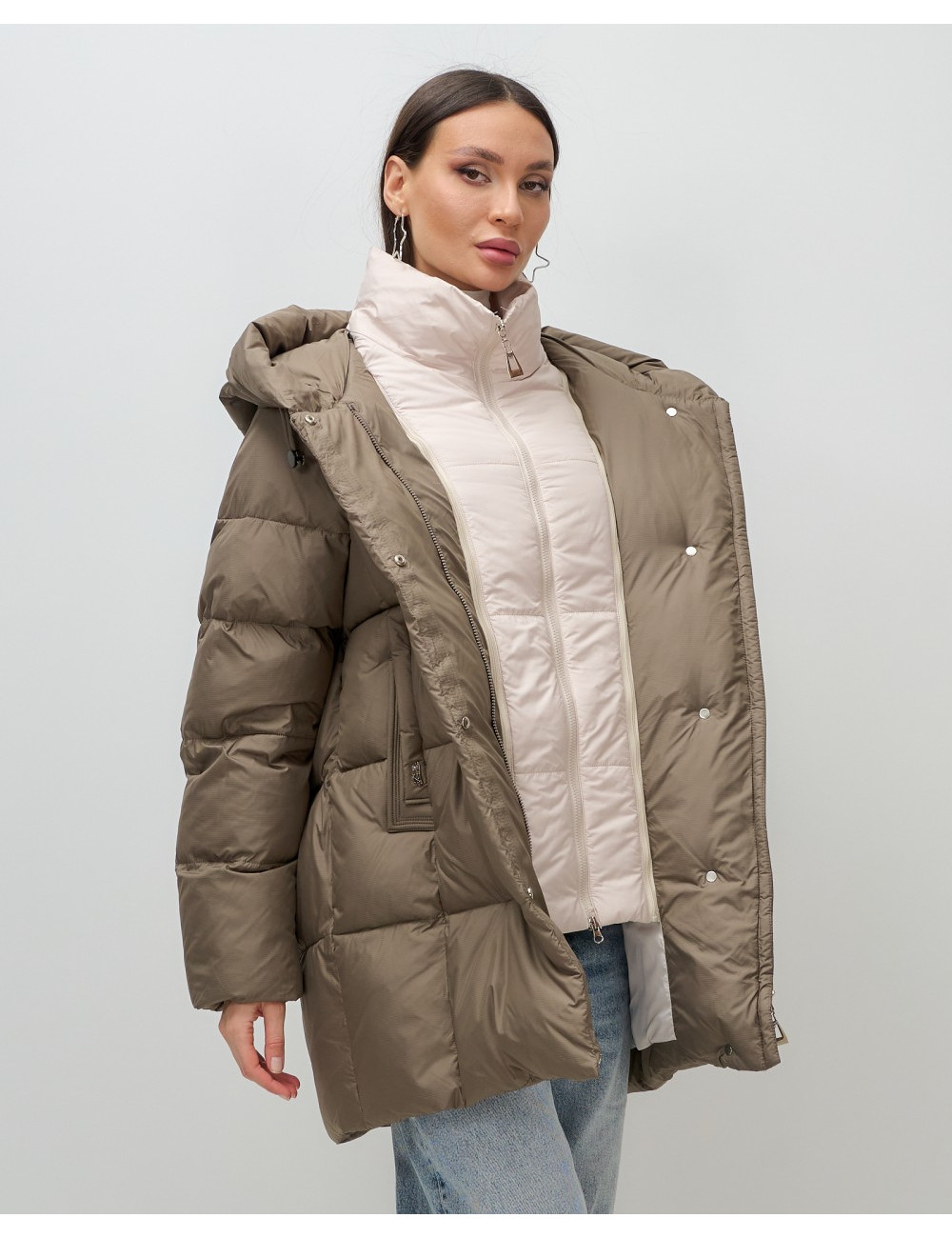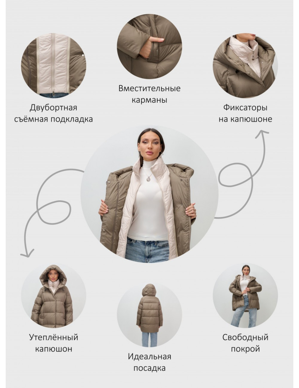 Куртка представлена в нескольких расцветках: чёрный, коричневый, бежевый и хаки. Стильные декоративные элементы, такие как воротник, капюшон и карманы с пуговицами, придают модели особый шарм.