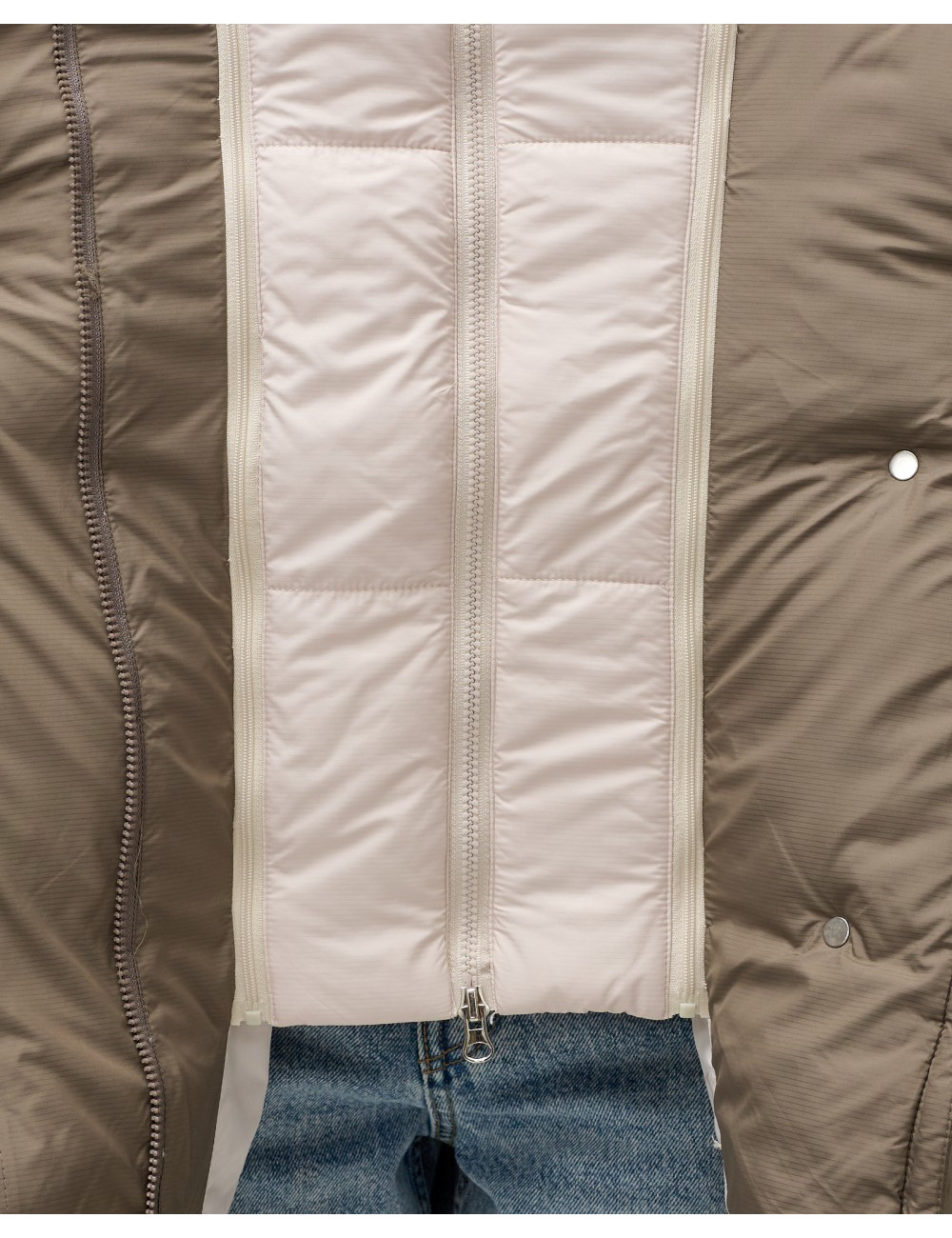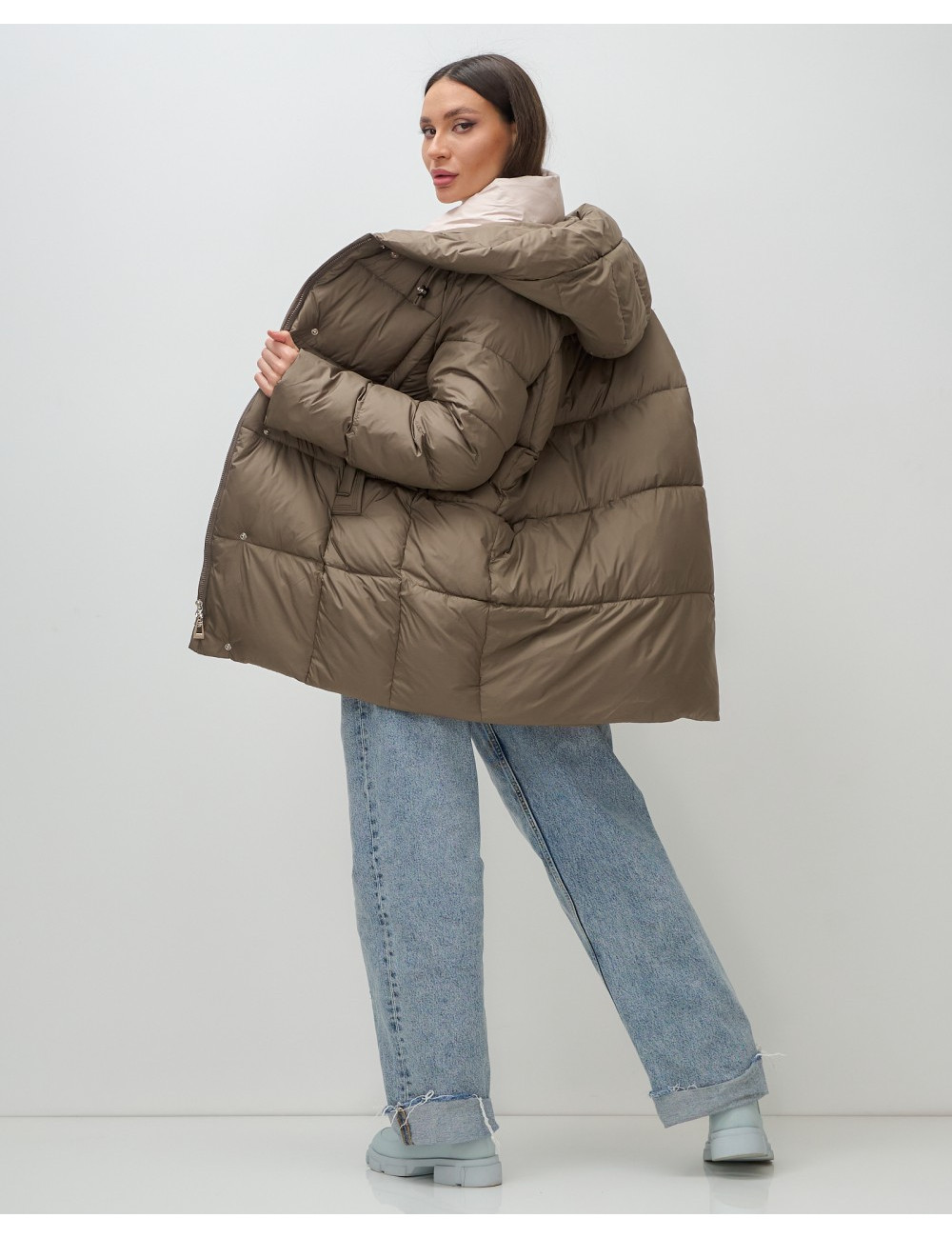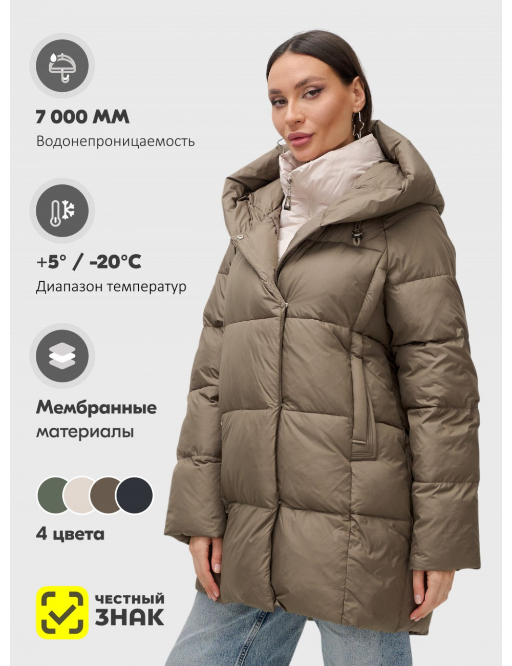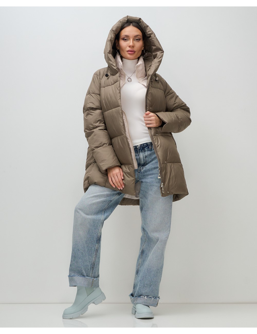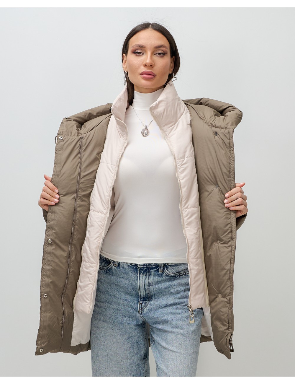 Куртка представлена в нескольких расцветках: чёрный, коричневый, бежевый и хаки. Стильные декоративные элементы, такие как воротник, капюшон и карманы с пуговицами, придают модели особый шарм.