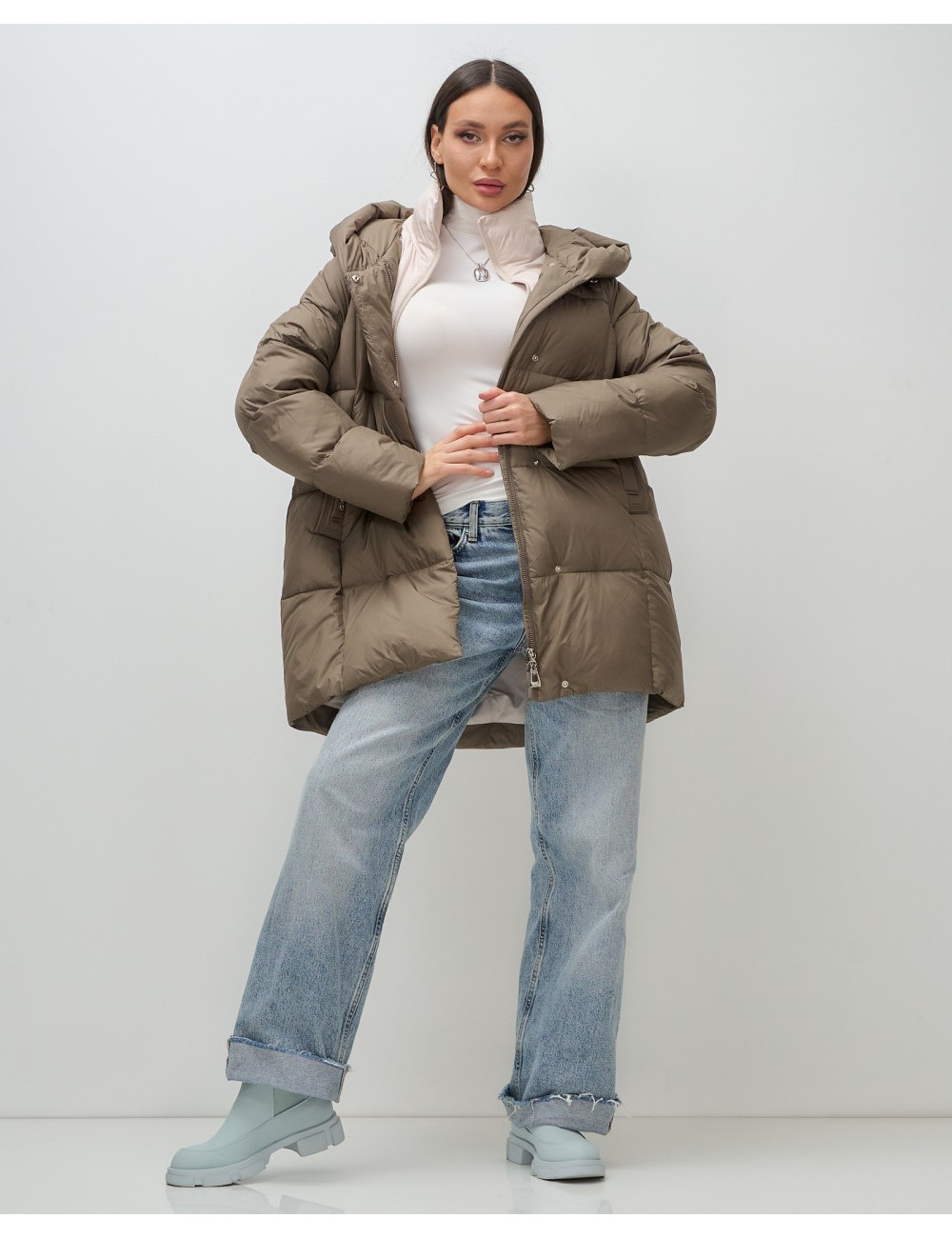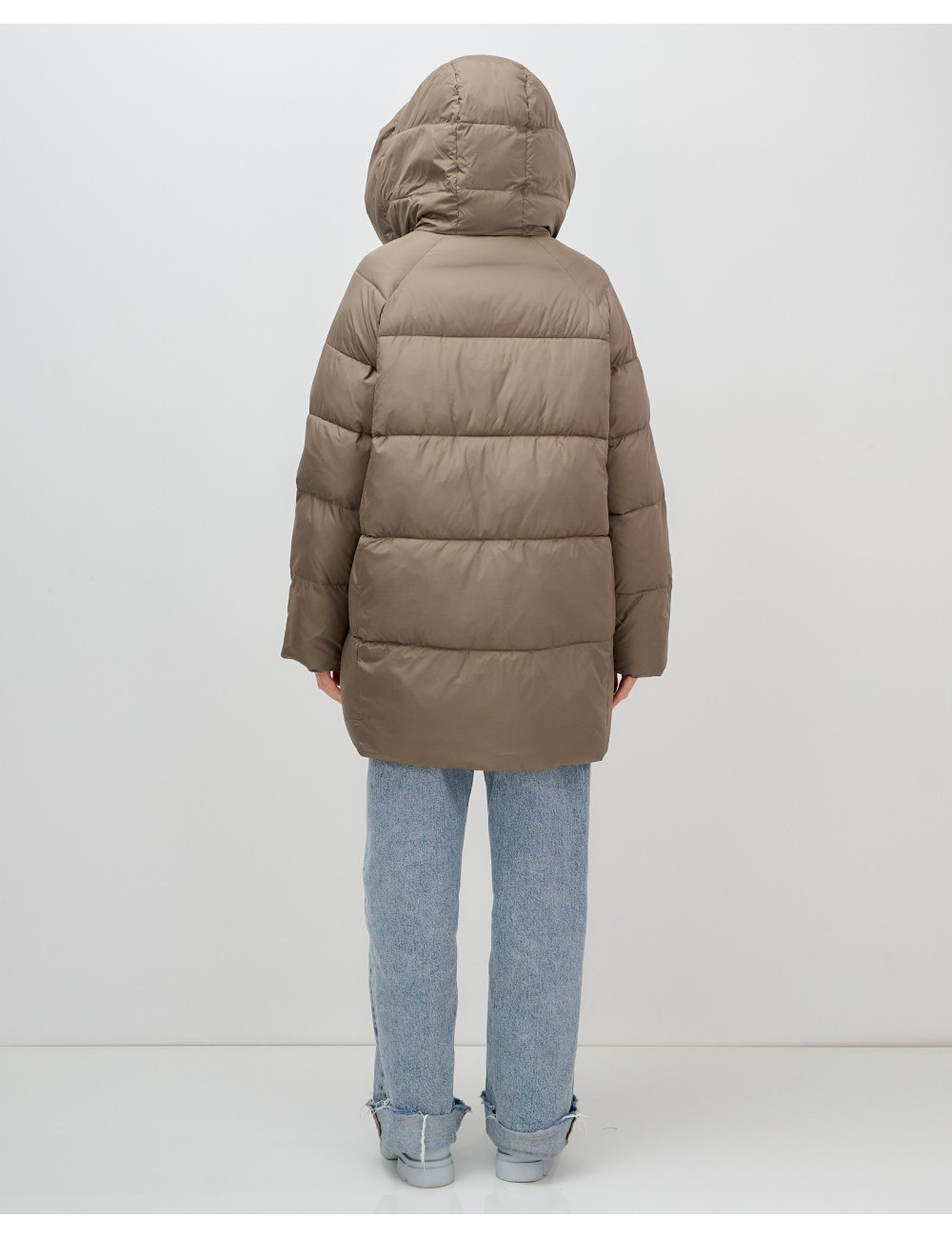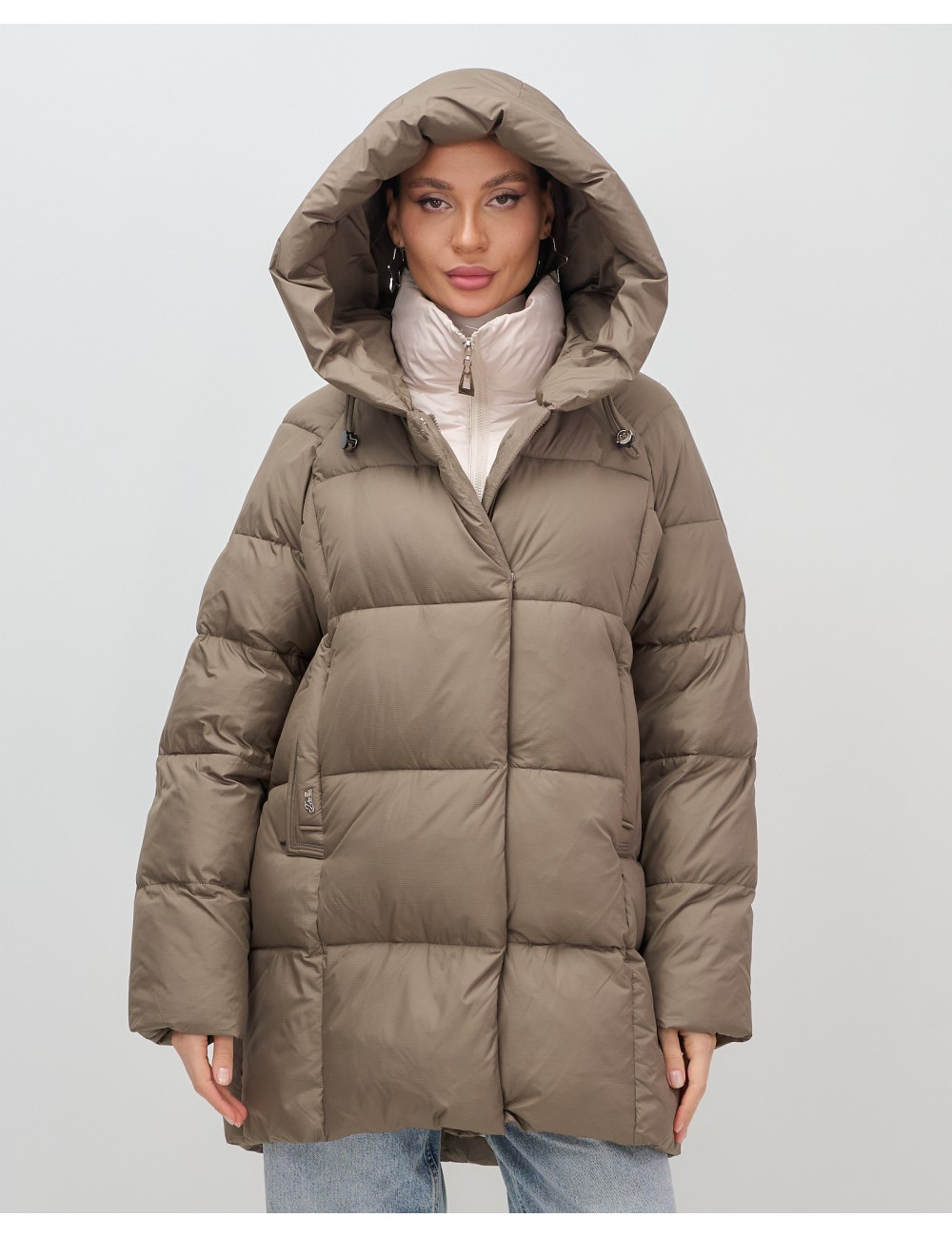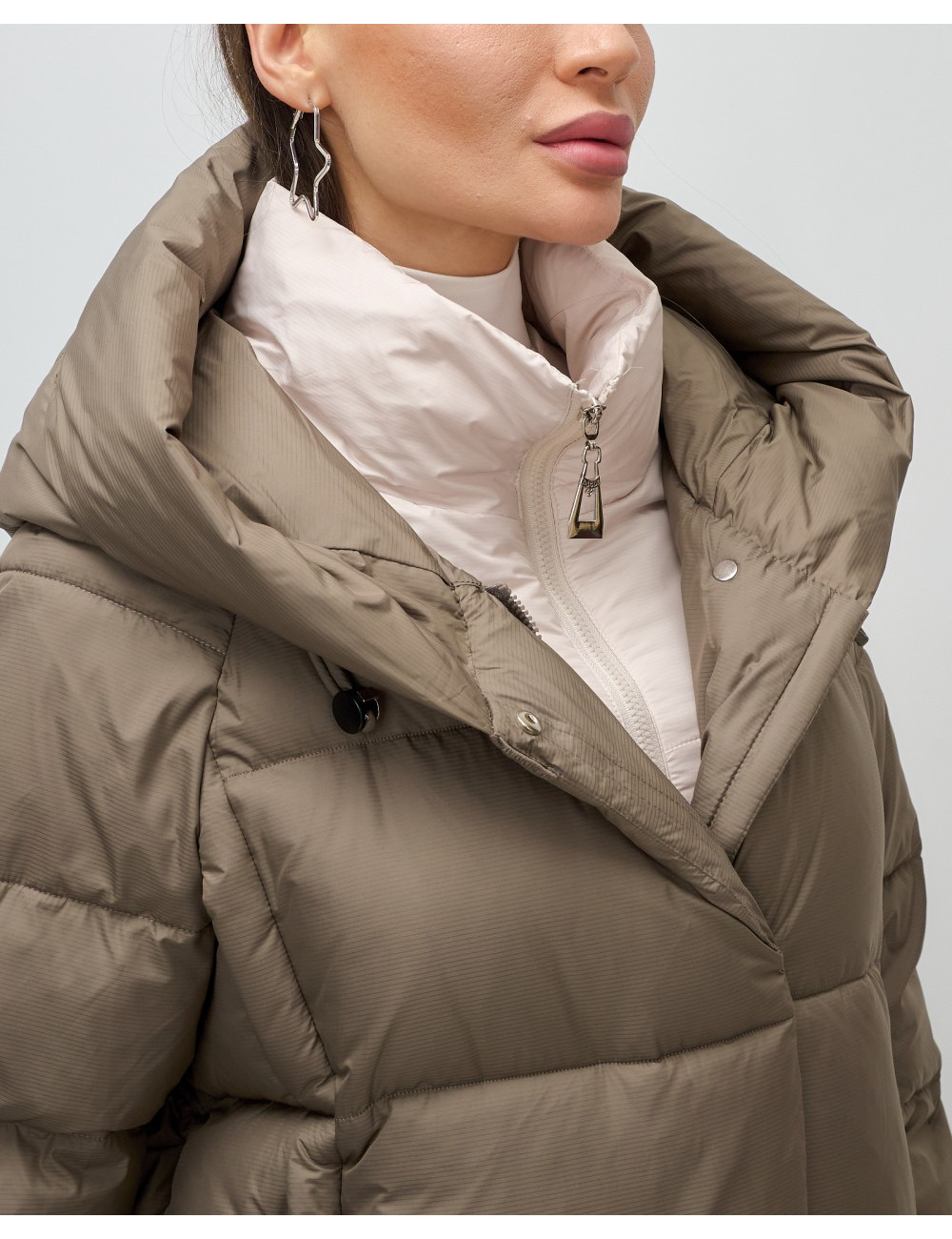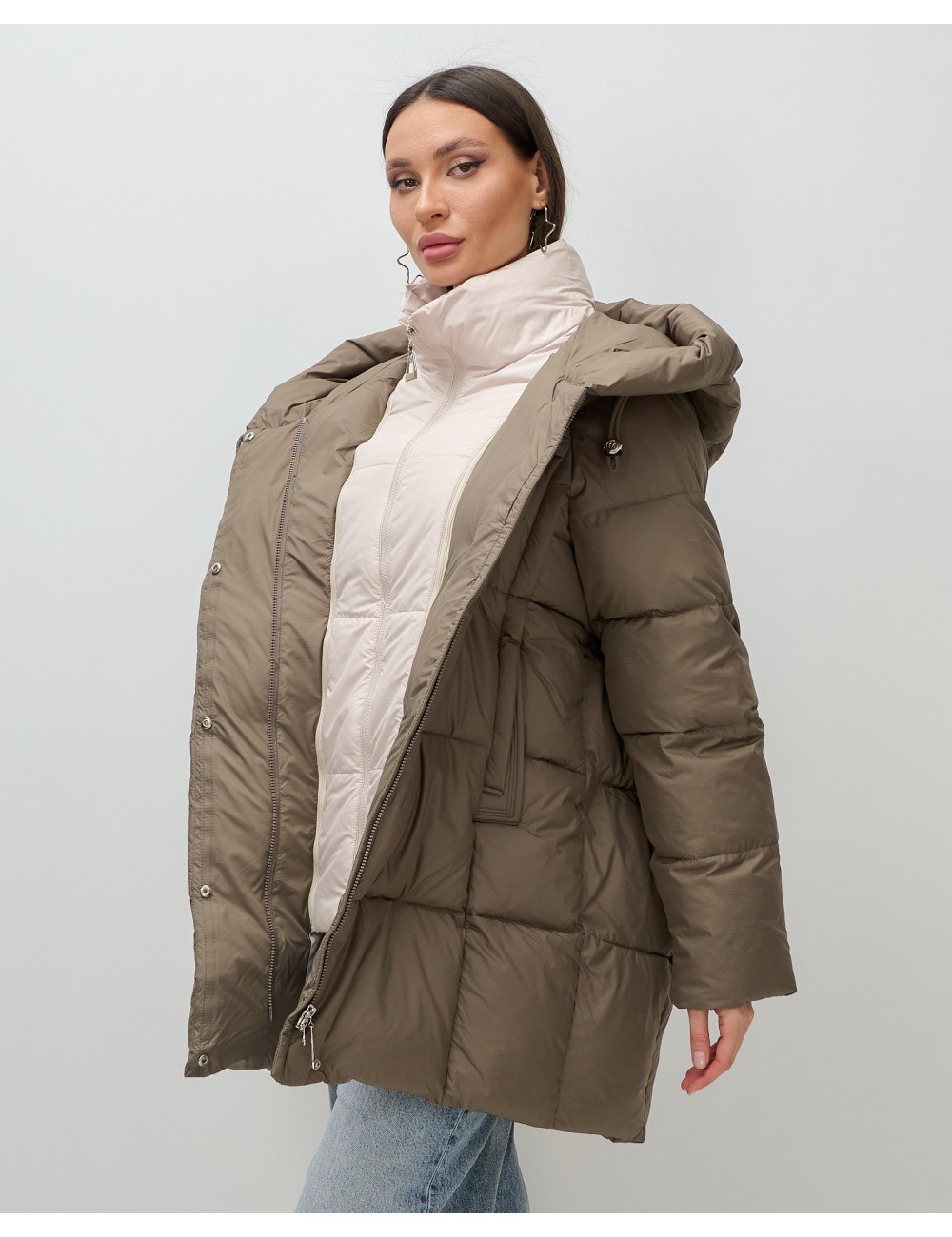 Куртка представлена в нескольких расцветках: чёрный, коричневый, бежевый и хаки. Стильные декоративные элементы, такие как воротник, капюшон и карманы с пуговицами, придают модели особый шарм.