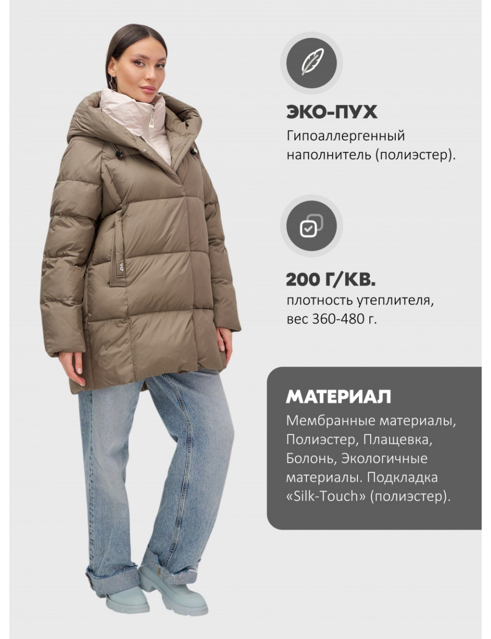 Куртка изготовлена из быстро сохнущего, дышащего и гипоаллергенного материала, который будет служить вам долго. Она обеспечивает комфорт и защиту в холодное время года.