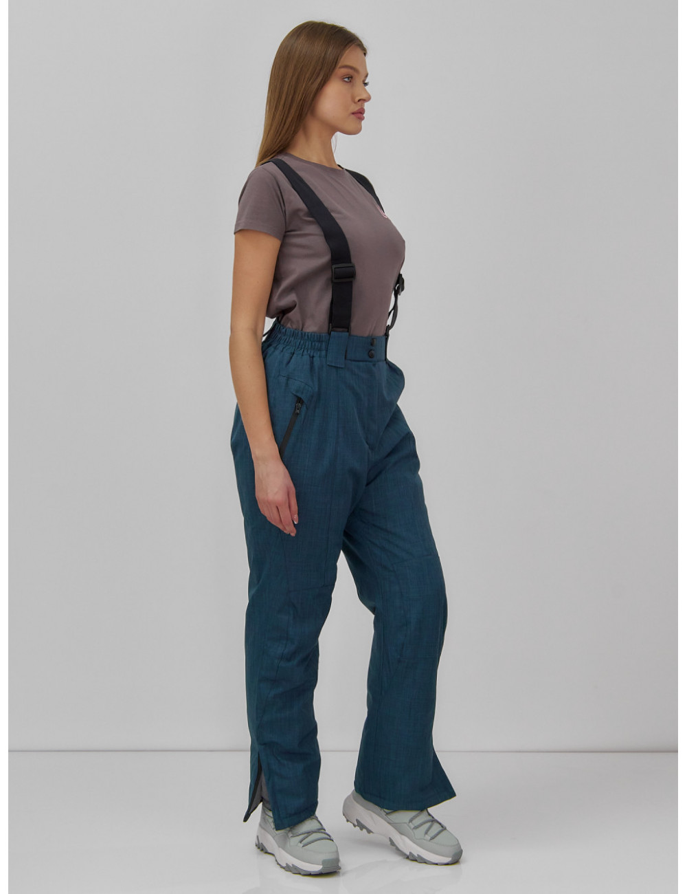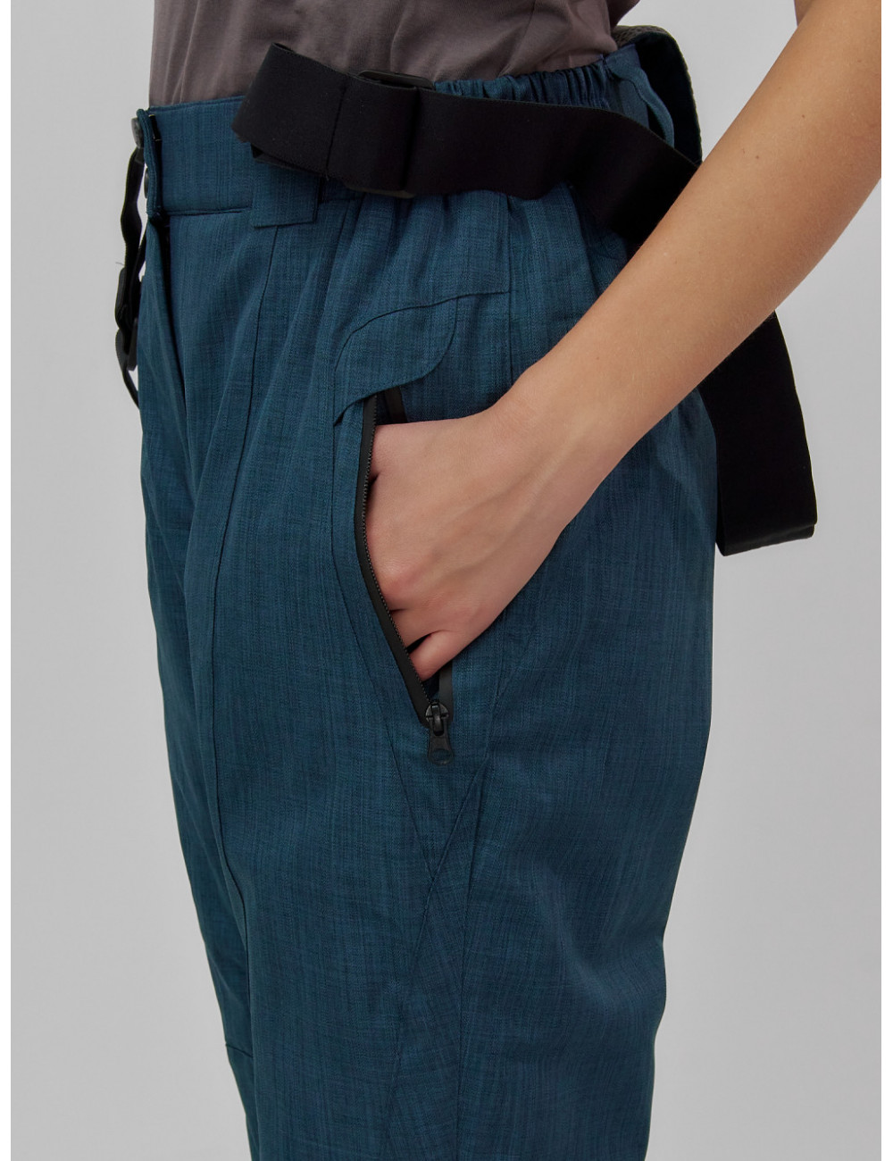 Ответ: Брюки имеют прямой свободный покрой, прорезиненную молнию, снегозащитные гамаши, прорезной карман на молнии и съёмные бретели.
