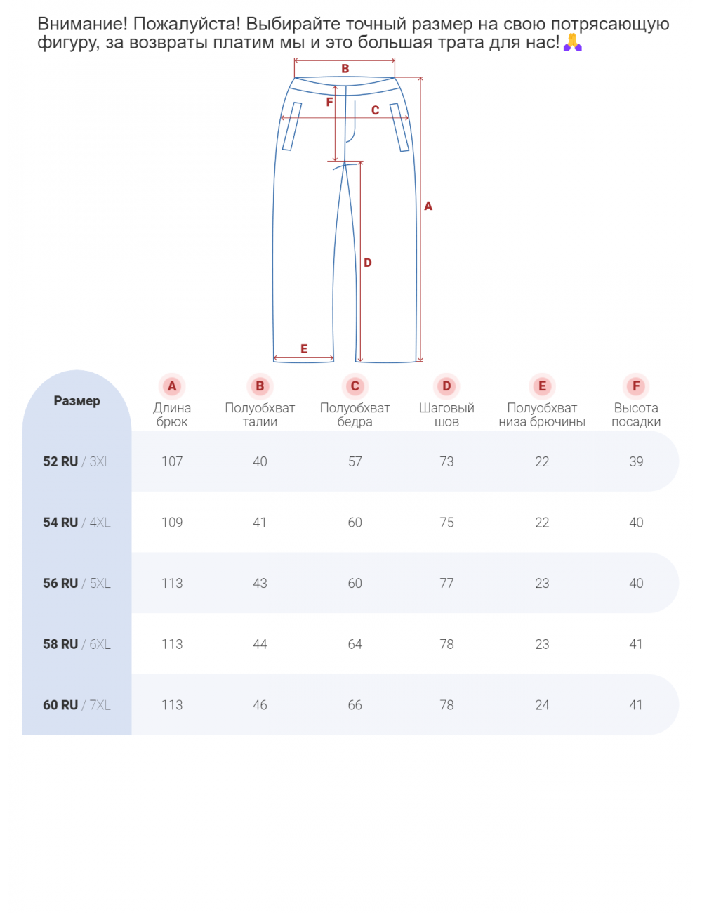 - Длина брюк — измеряется от талии до нижнего края брюк.