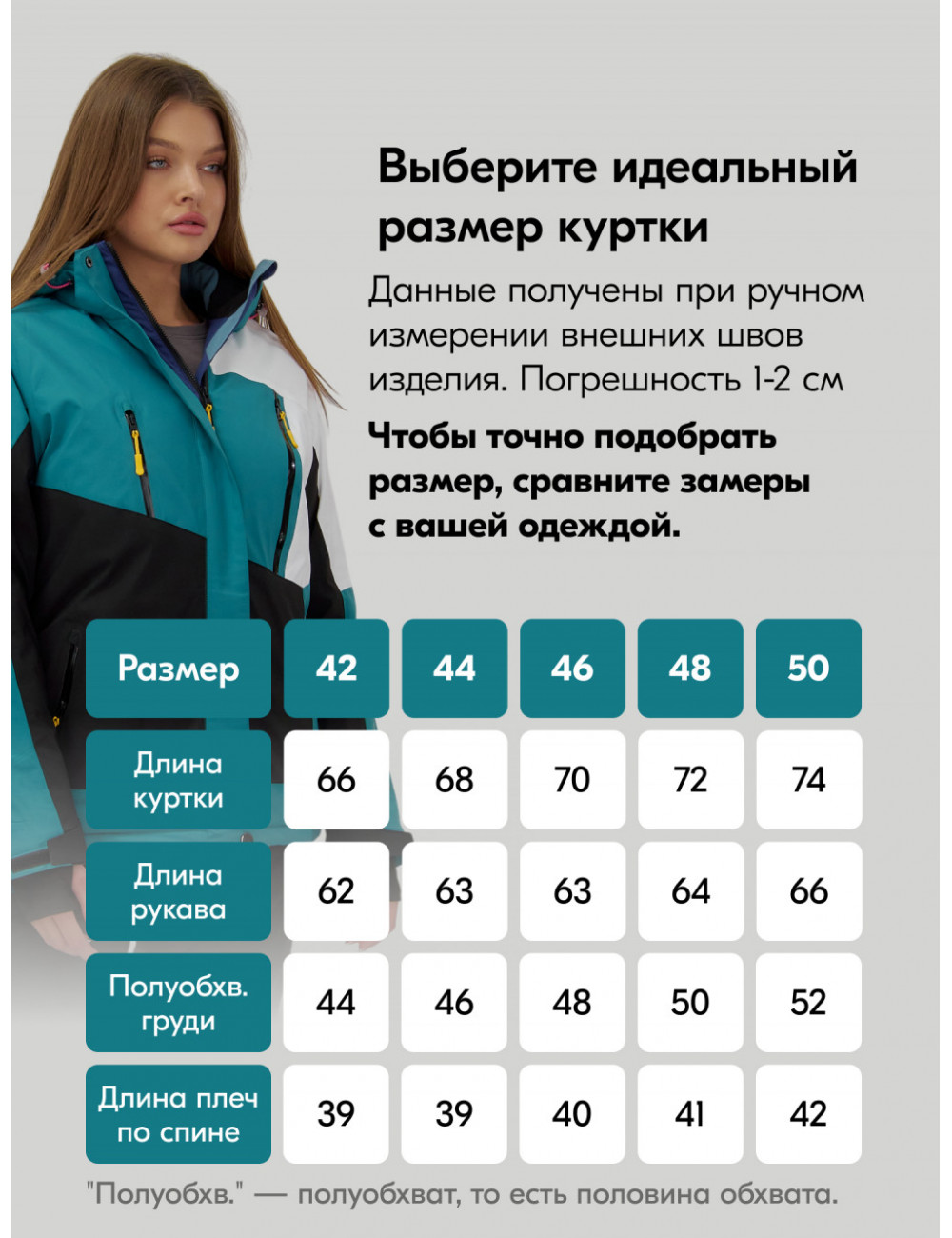 - Полуобхват груди — измеряется с передней стороны куртки, вокруг самой широкой части груди.