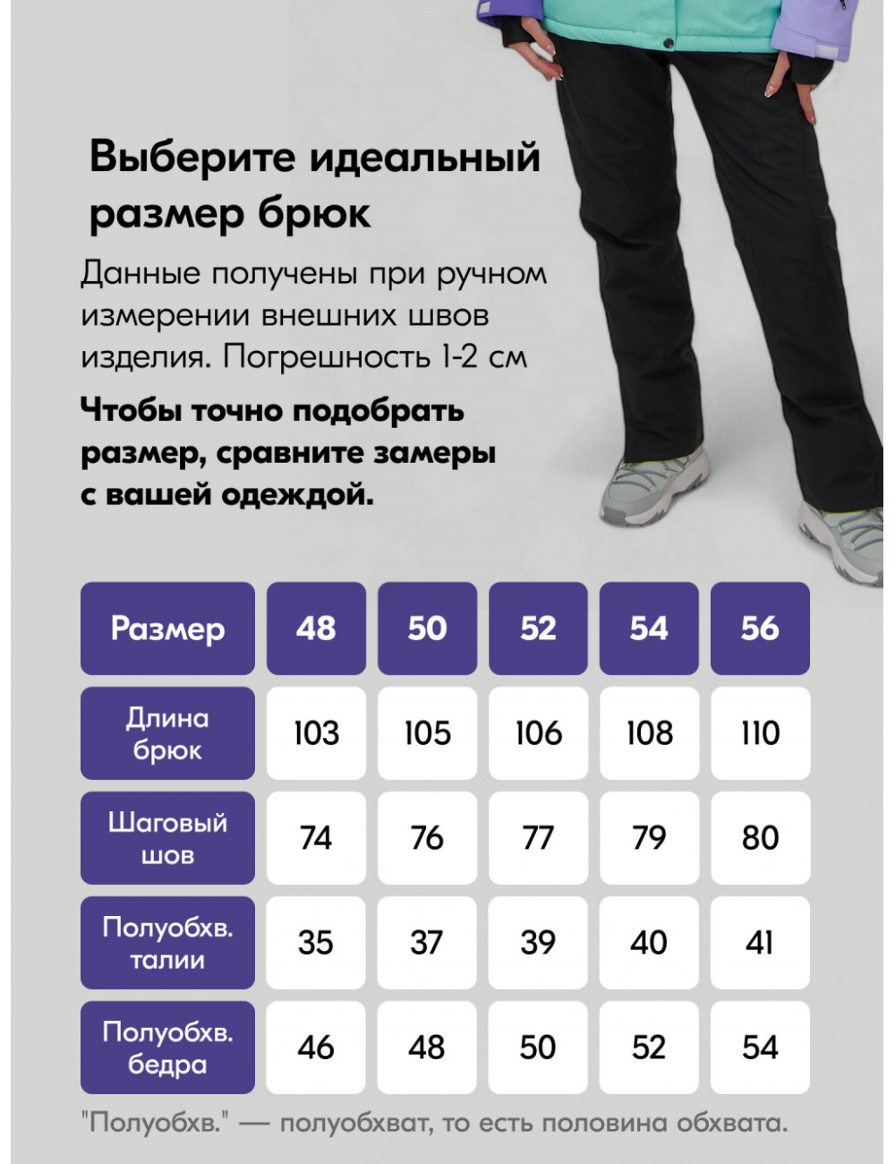 При выборе размера горнолыжного костюма рекомендуем вам измерить следующие параметры: длину куртки, полуобхват груди, длину плеч по спине, длину рукава, длину брюк, полуобхват талии, полуобхват бёдер и шаговый шов. Используйте сантиметровую ленту для точности измерений.