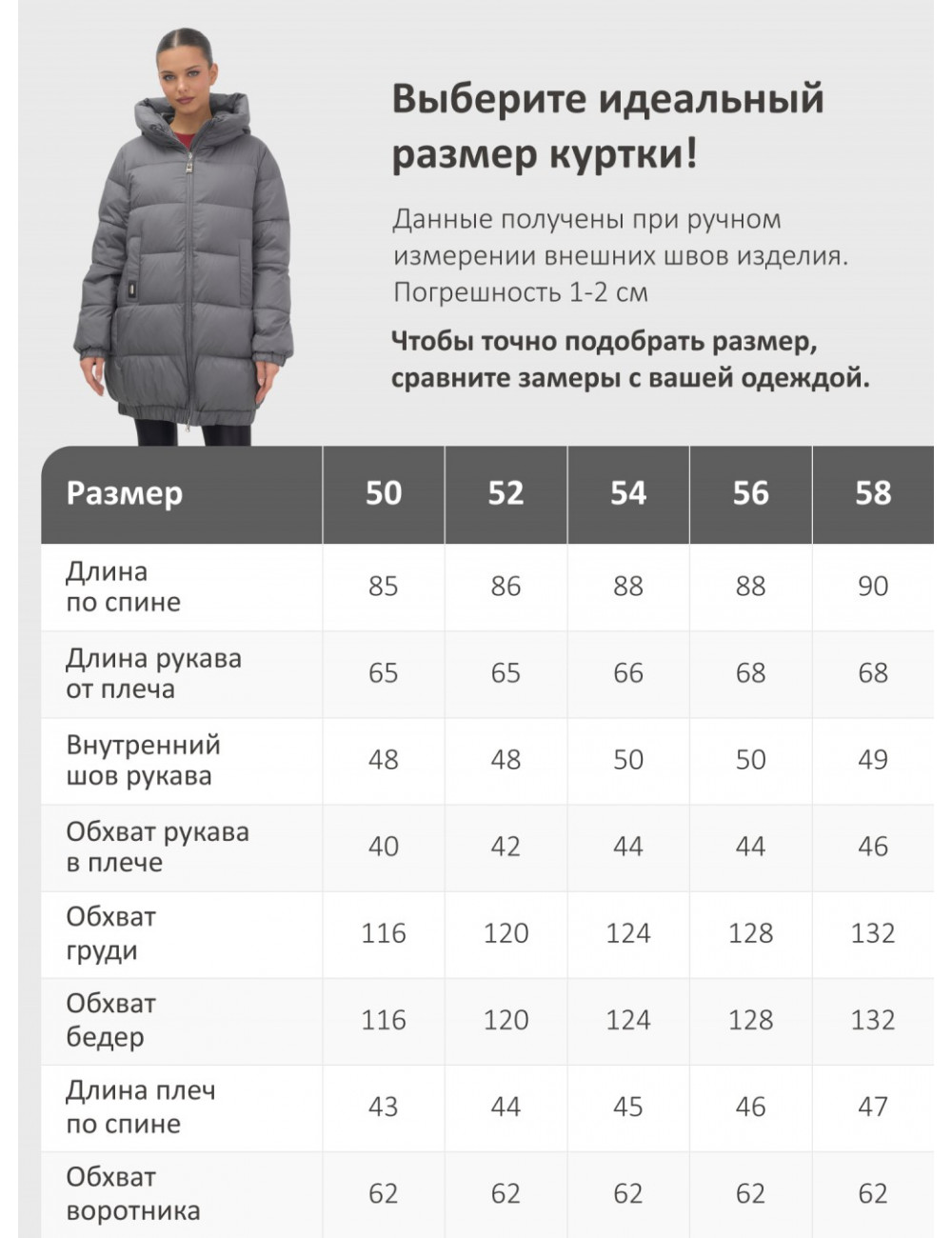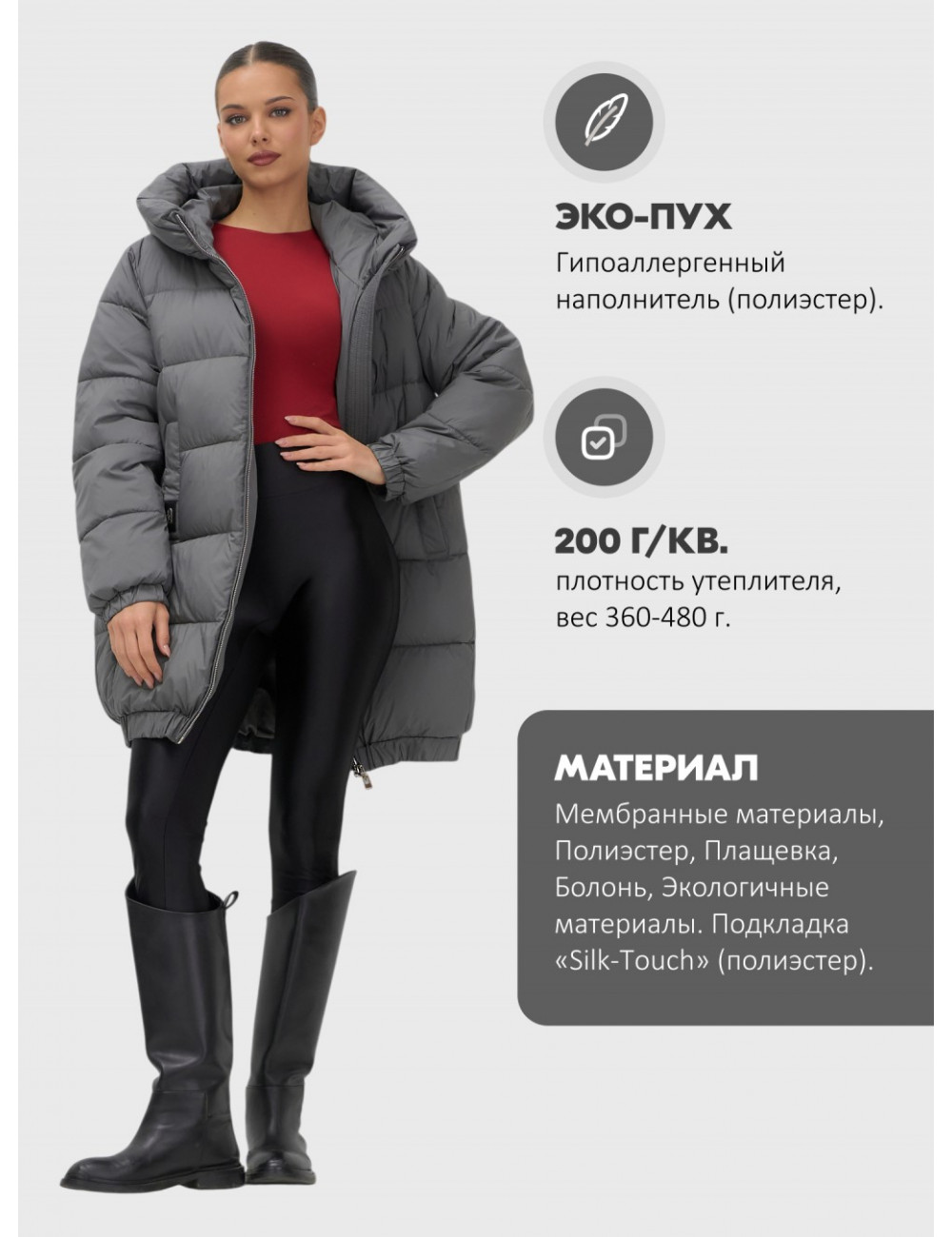 Пуховик рассчитан на диапазон температур от +5 °С до -20 °С.