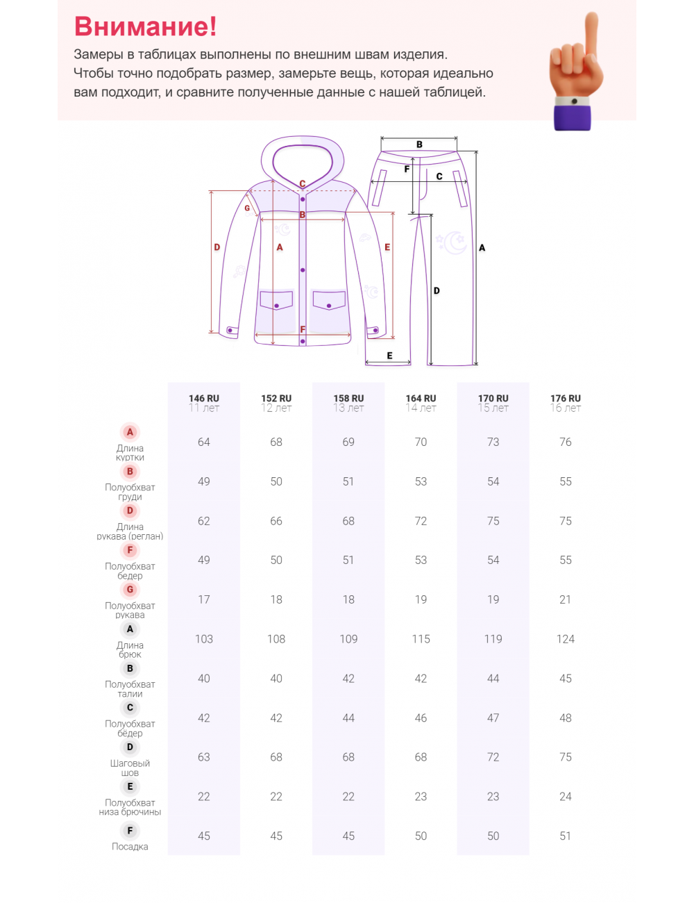 | Подростковый S (146) | 140 - 146 | 10 - 11 лет |