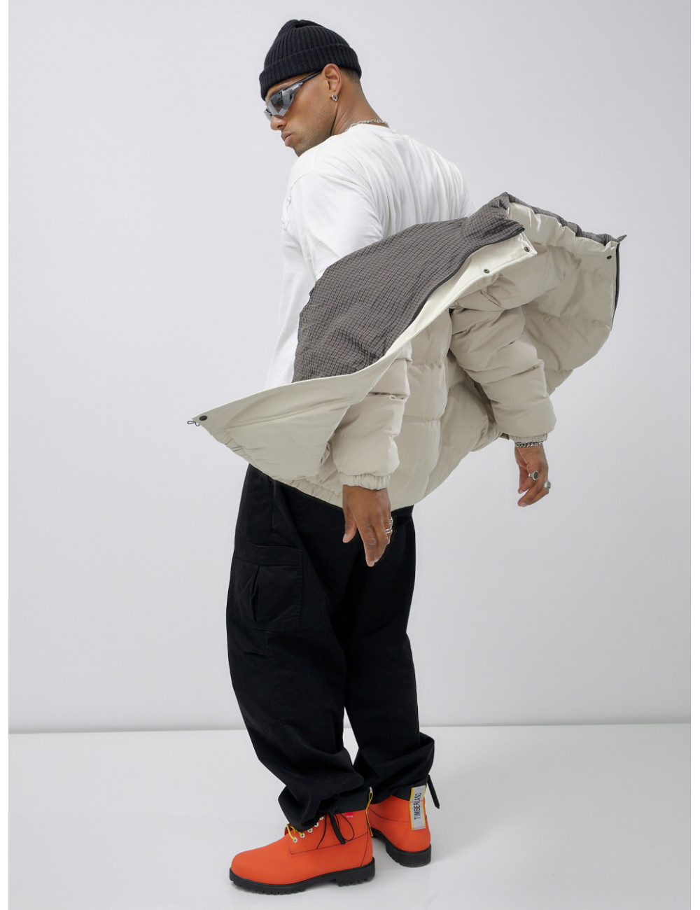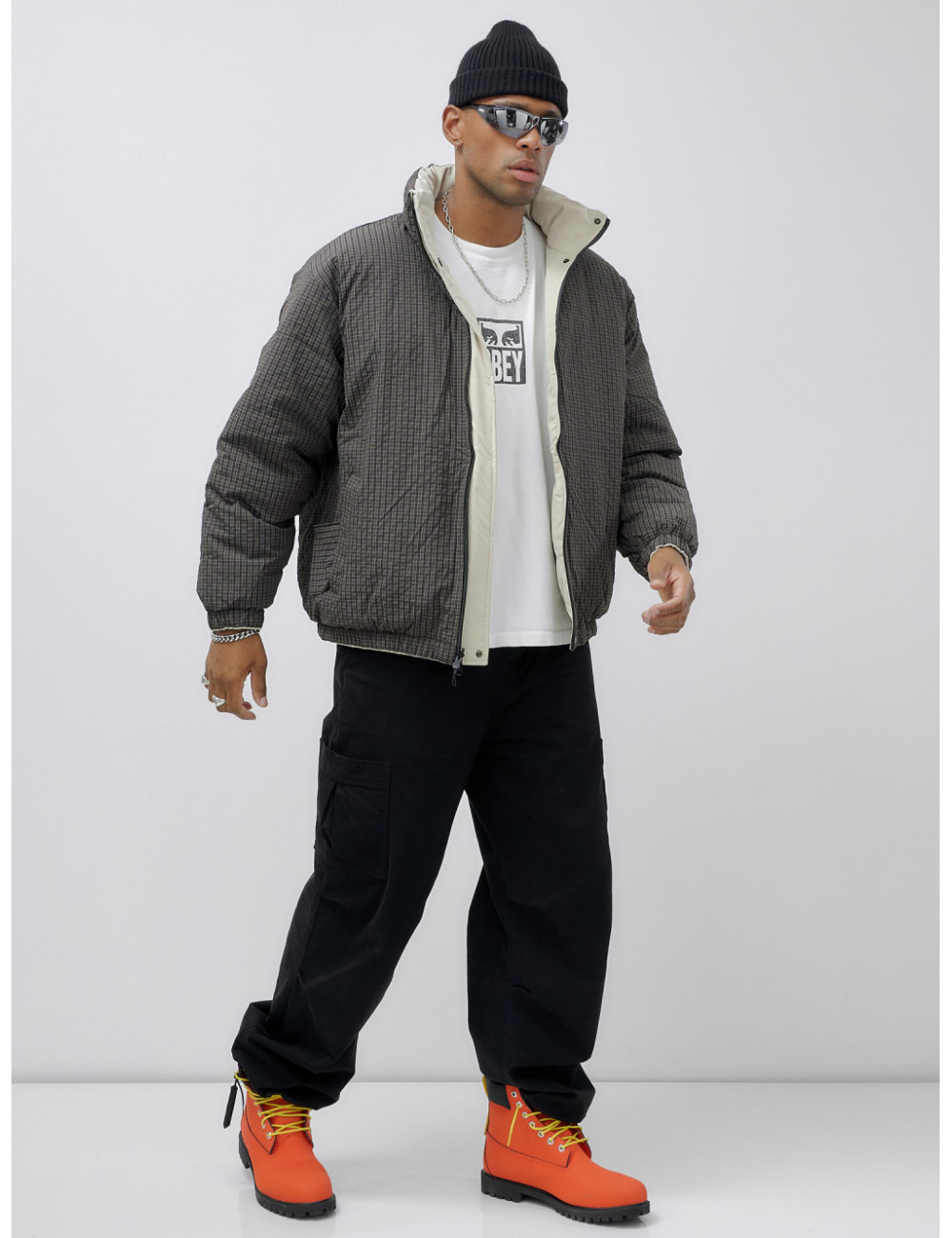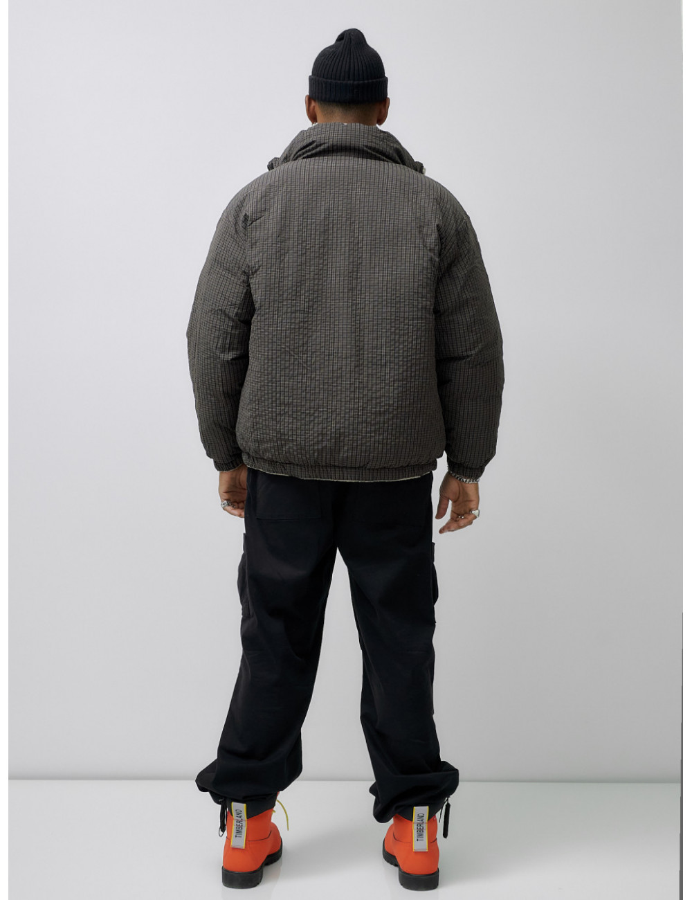 Куртка имеет две стороны: одна простегана, фактура напоминает зефир, но ткань плотная мембранная, которая надёжно защищает от холода и влаги. Вторая сторона отличается уникальной текстурой с мелким клетчатым рисунком, добавляя изюминку вашему стилю.